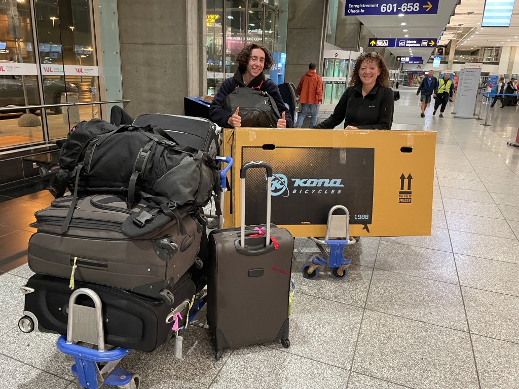 Et 60 heures plus tard (incluant plusieurs de décalage horaire) nous mettons les pieds à Dunedin, NZ, avec nous trois, nos bagages et nos vélos. Qui l’eut cru.