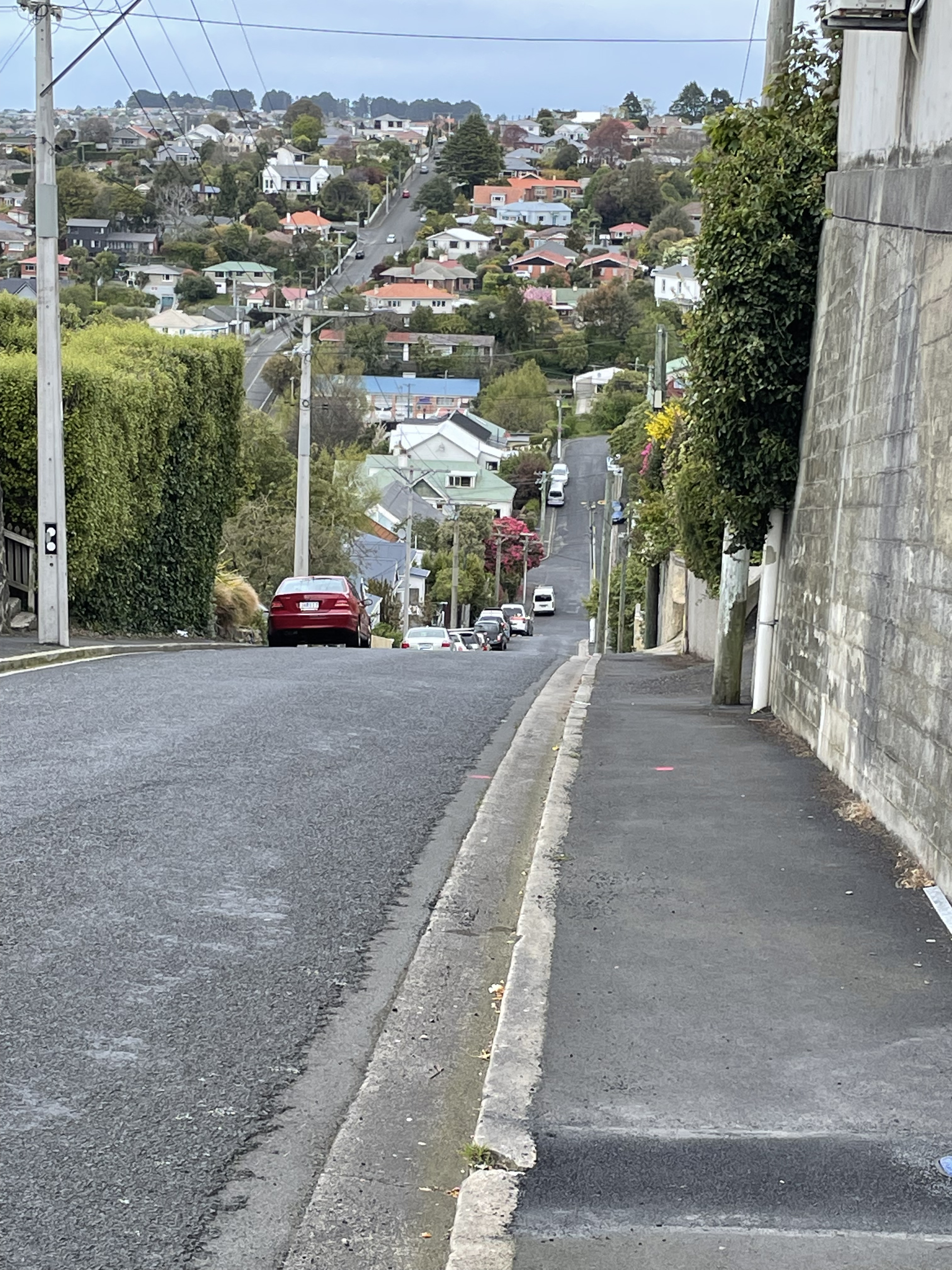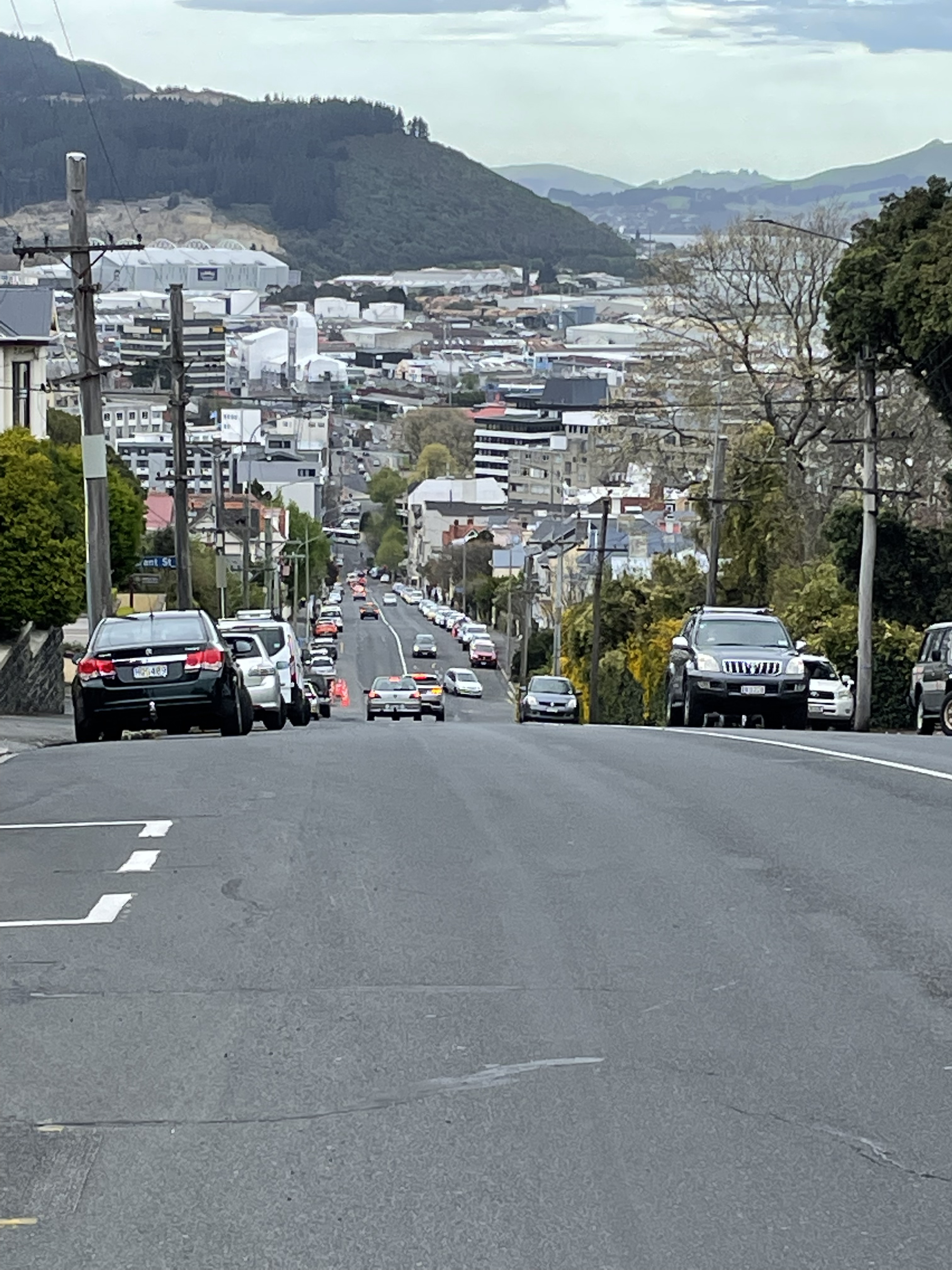 Uno : Dunedin, ça monte ou ça descend ! Elle semble construite sur des montagnes russes. Chaque sortie est un exploit sportif. Aller prendre deux bières au centre-ville, c’est excellent pour la santé. Nos mollets, nos cuisses et nos fesses seront bientôt méconnaissables.