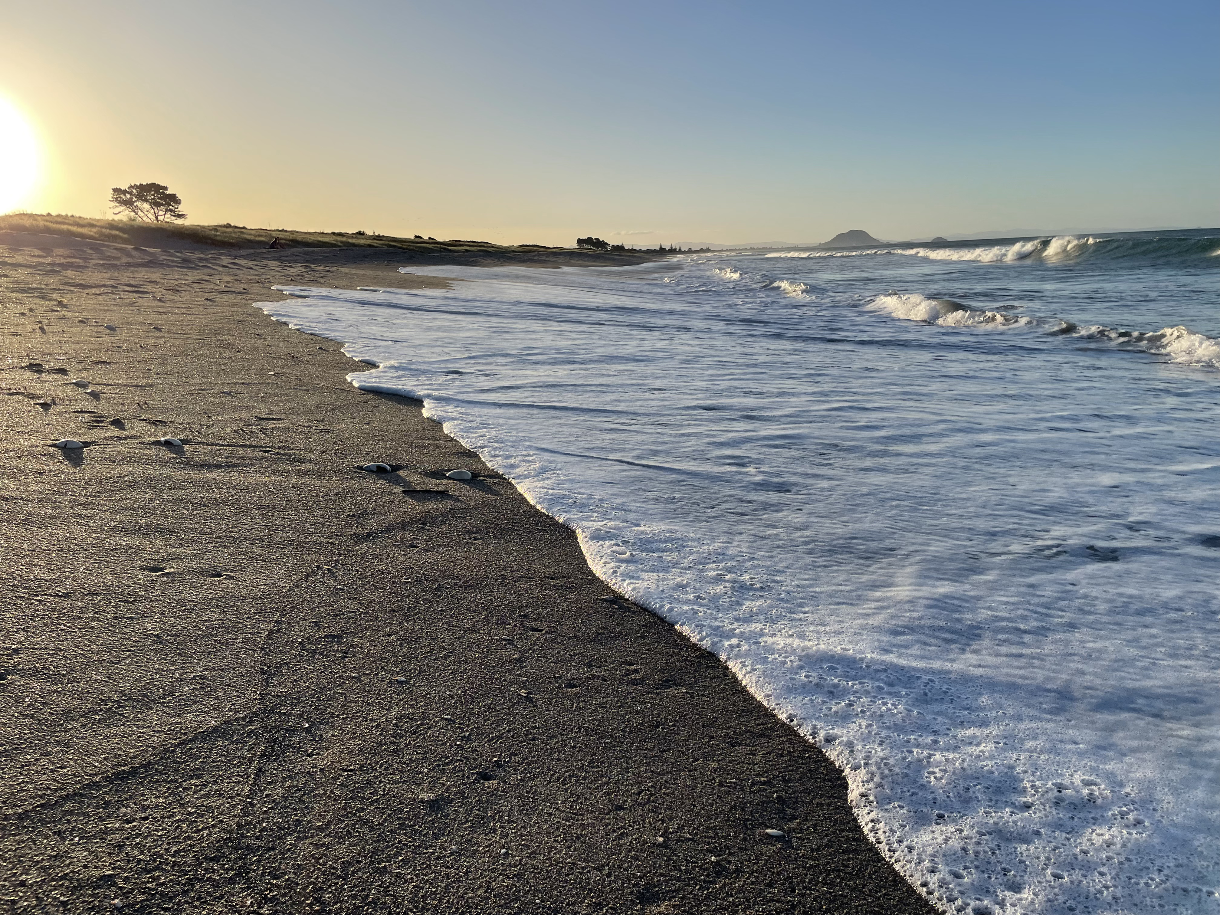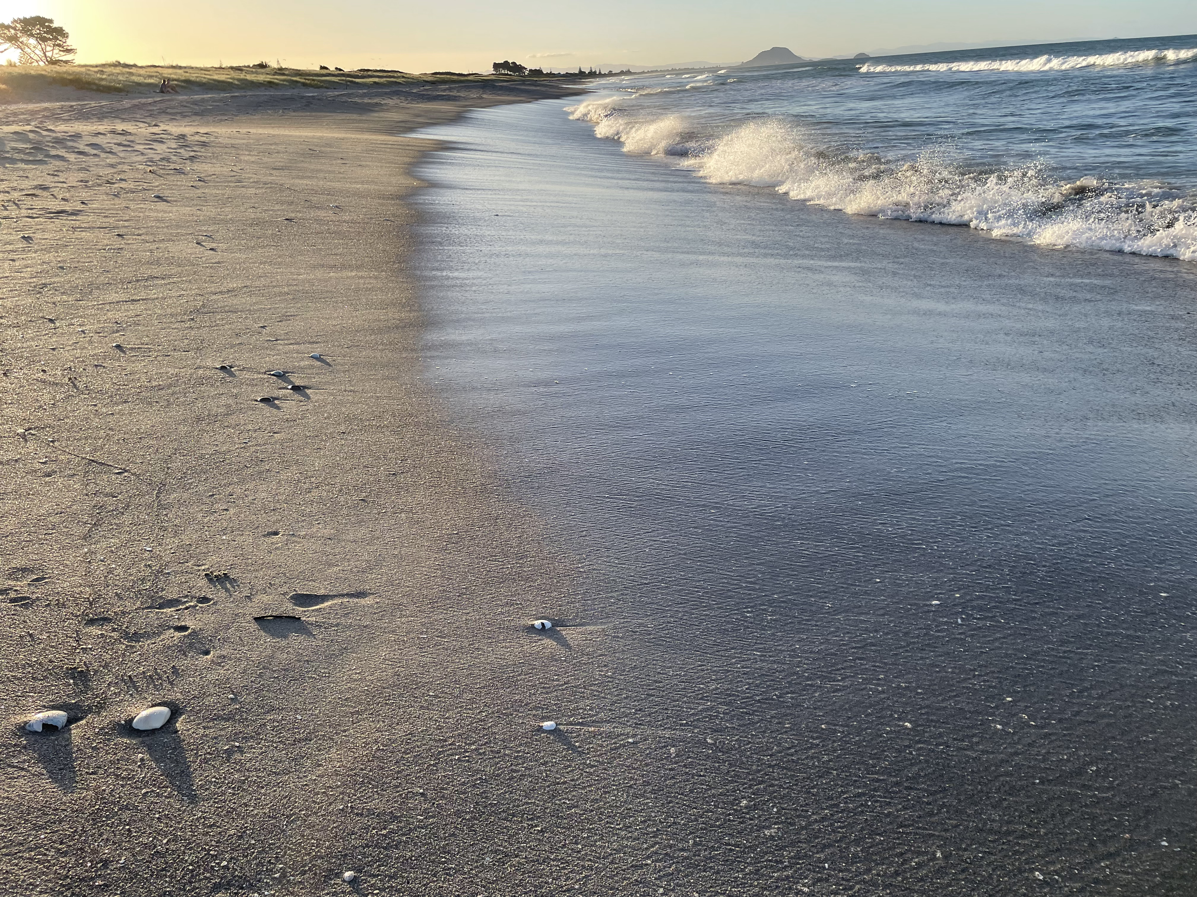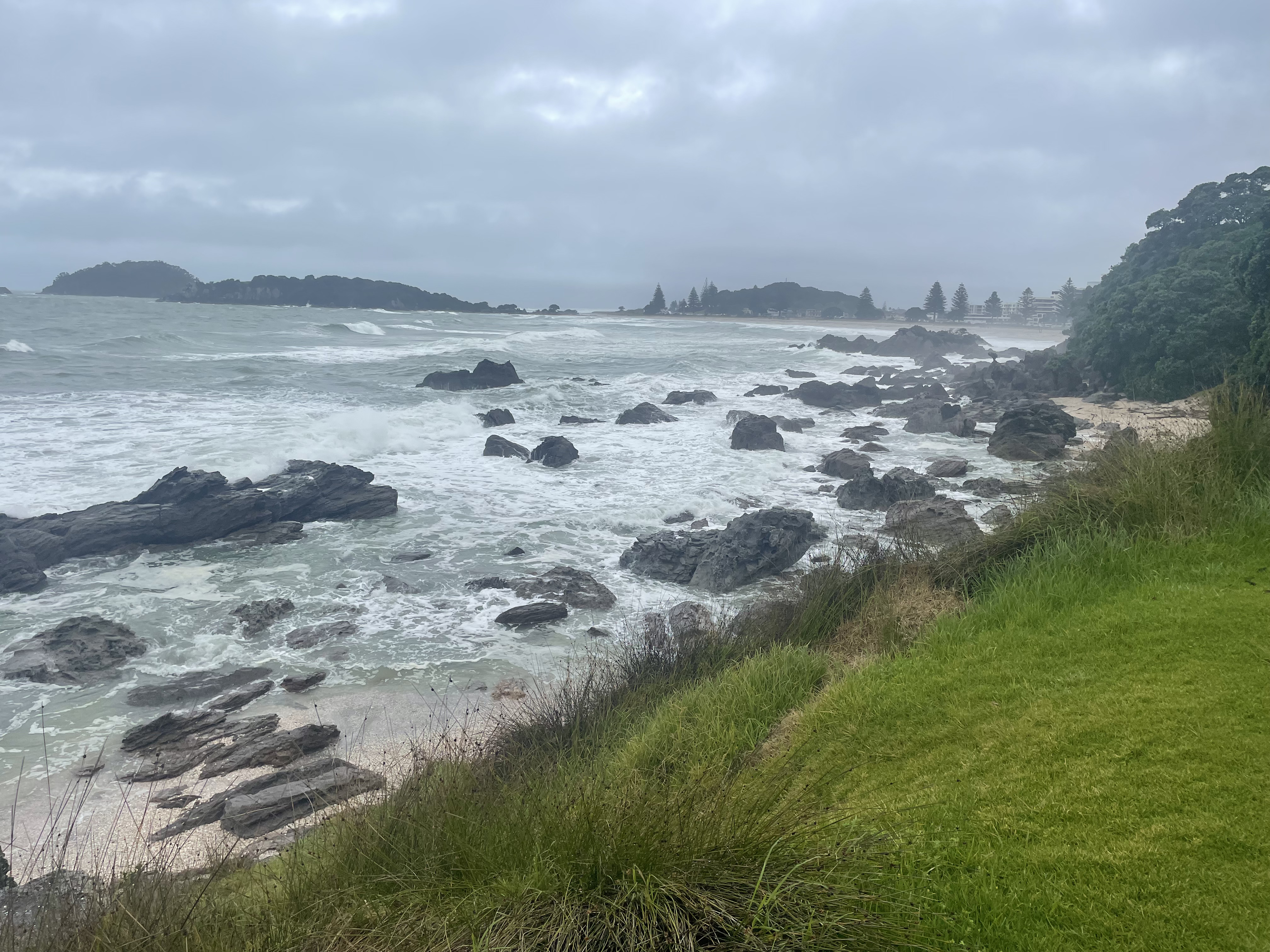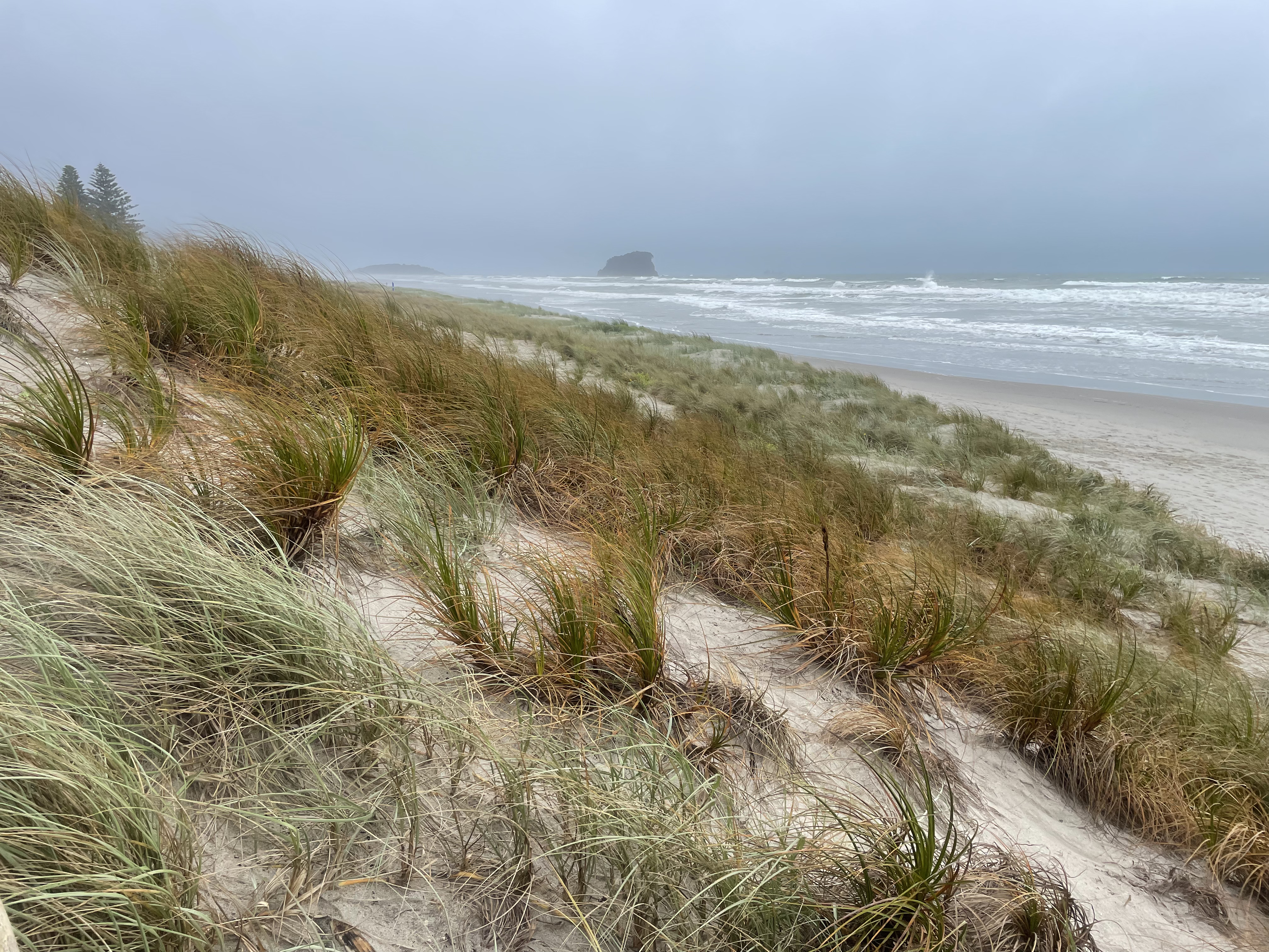 Papamoa, c’est une petite ville qui s’étend le long d’une plage longue longue longue, à perte de vue sur la côte nord est de l’Île du Nord. Malgré l’été, difficile de se baigner là à cause des vagues, de la température de l’eau et du cyclone Gabrielle. Mais de la beauté malgré tout, à perte de vue.