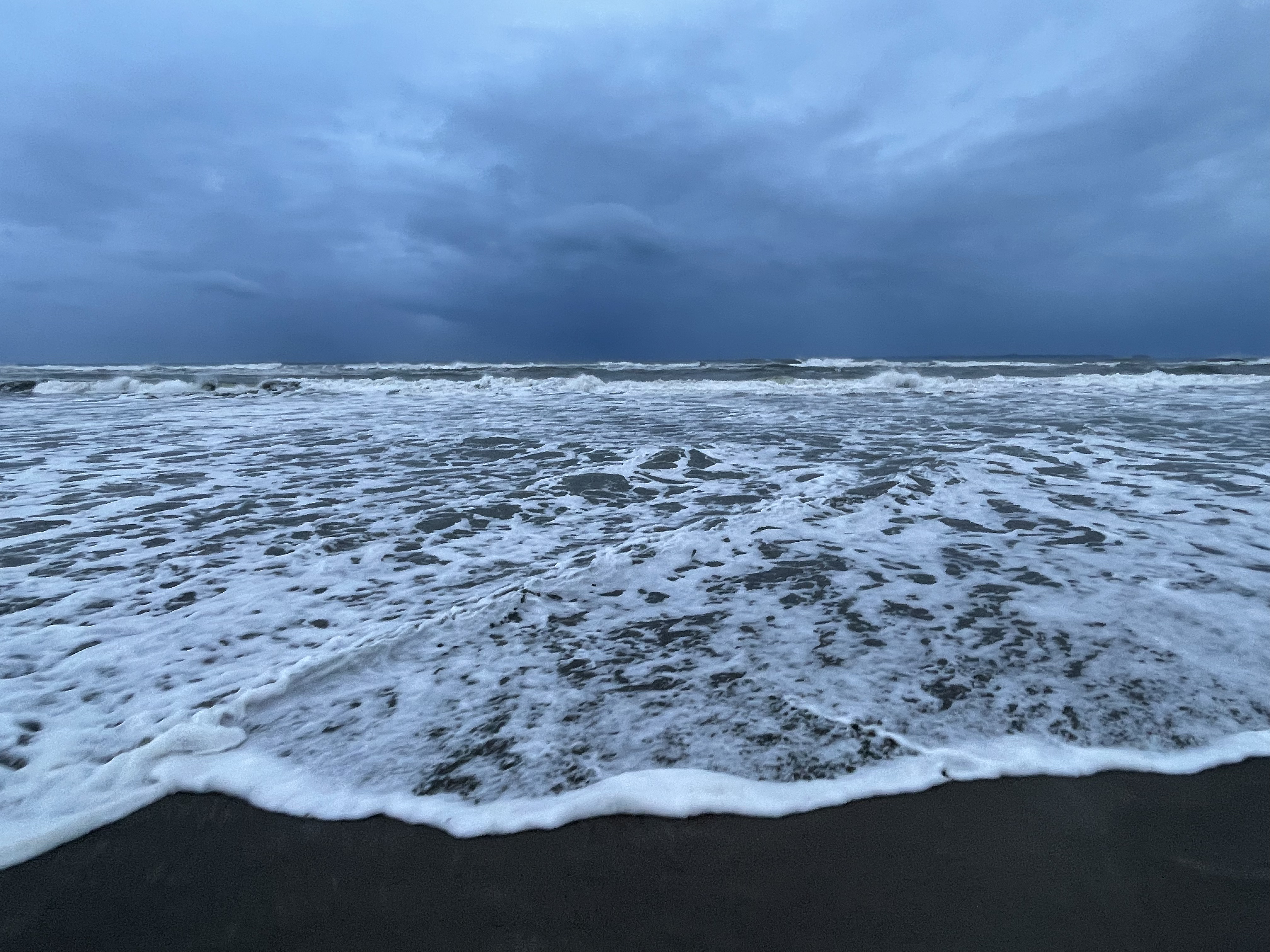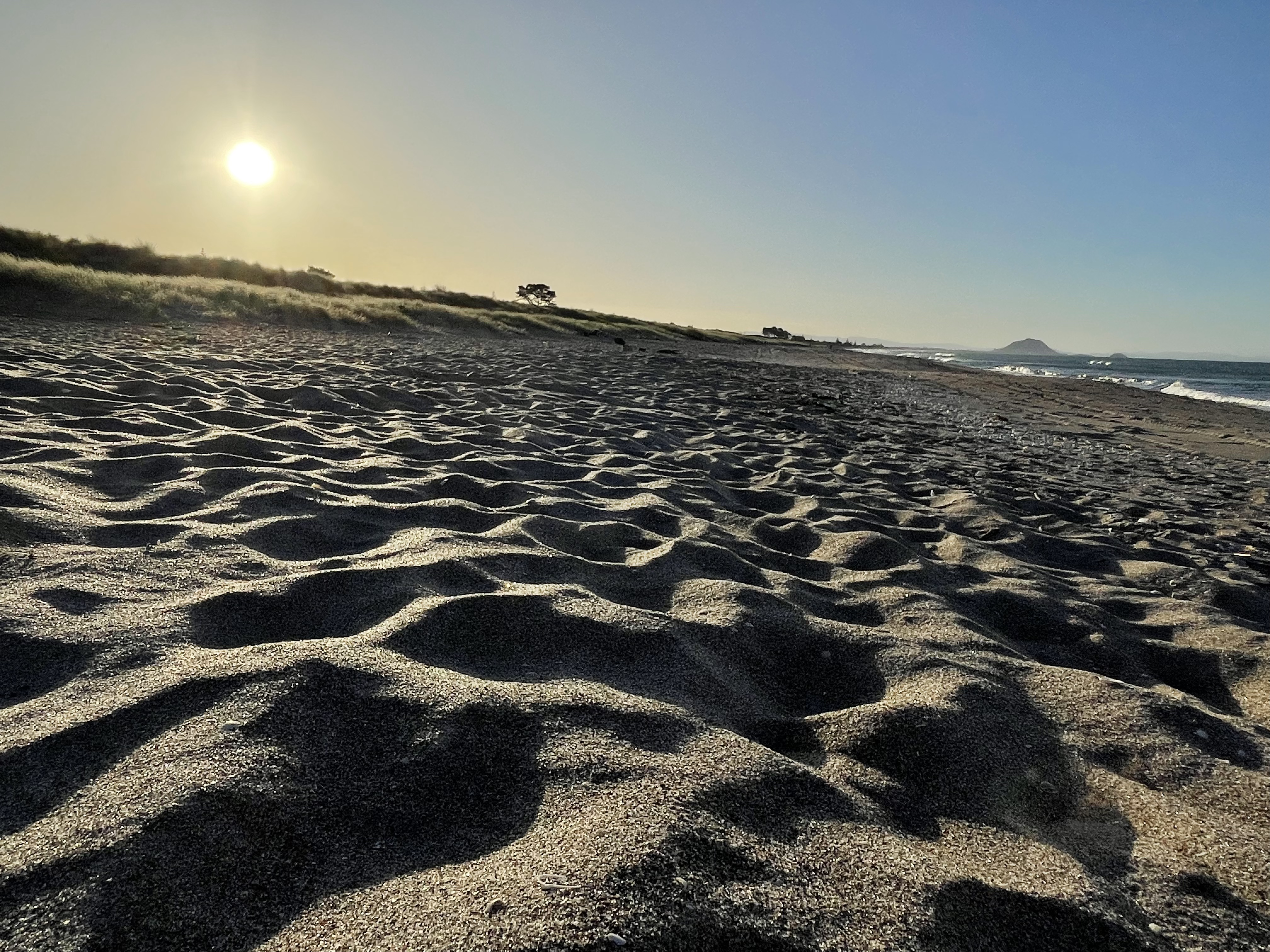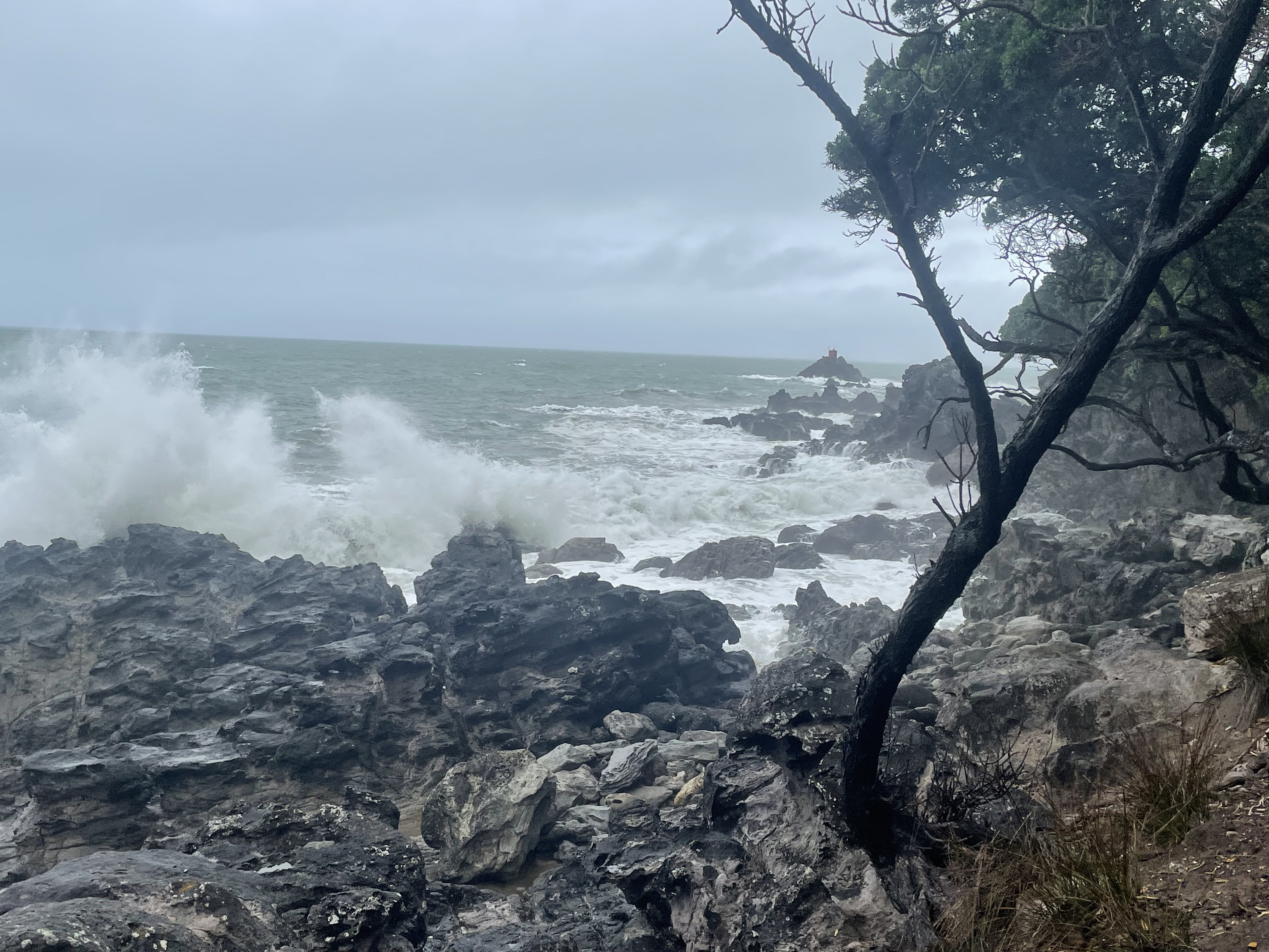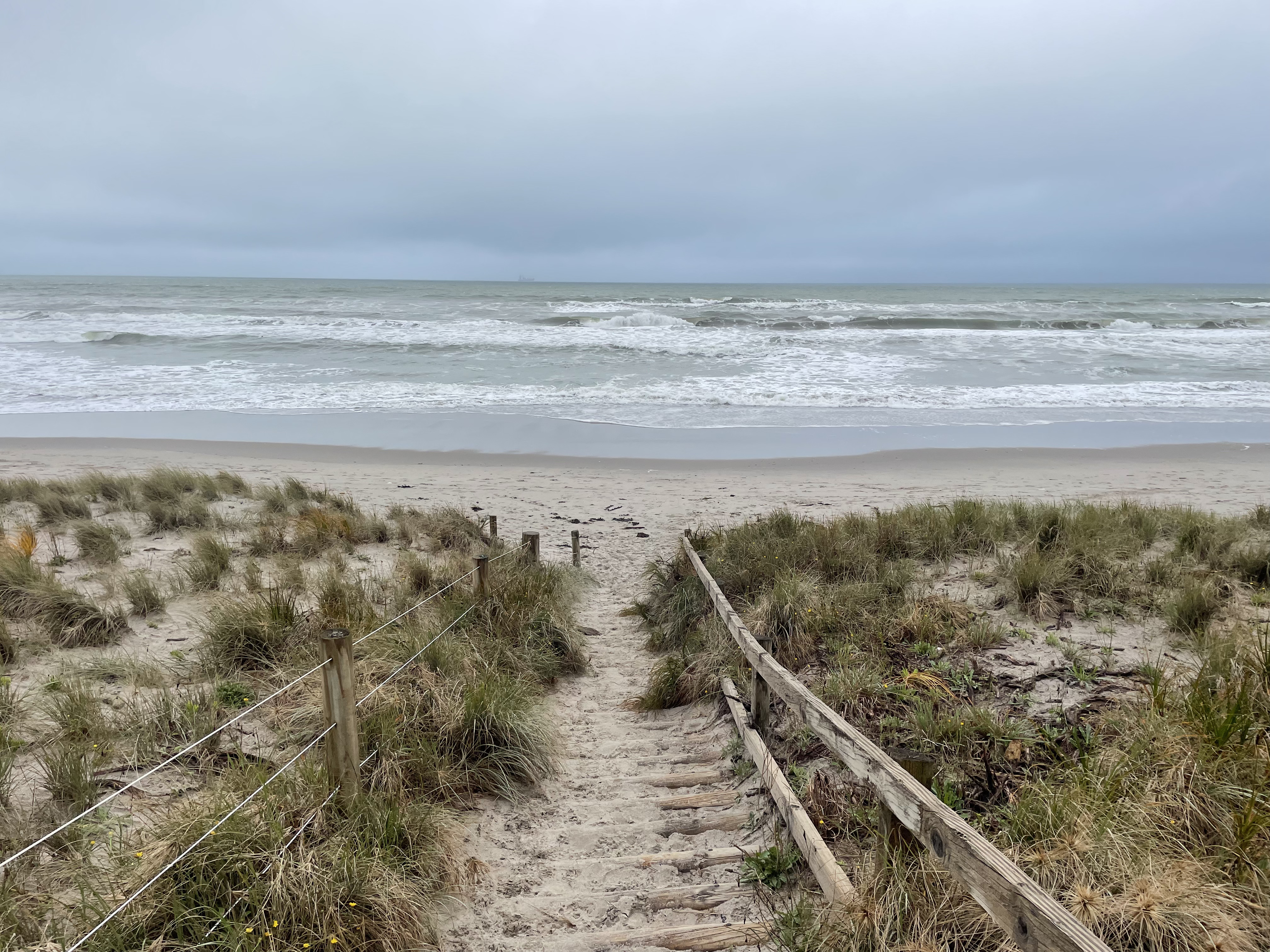 Papamoa, c’est une petite ville qui s’étend le long d’une plage longue longue longue, à perte de vue sur la côte nord est de l’Île du Nord. Malgré l’été, difficile de se baigner là à cause des vagues, de la température de l’eau et du cyclone Gabrielle. Mais de la beauté malgré tout, à perte de vue.
