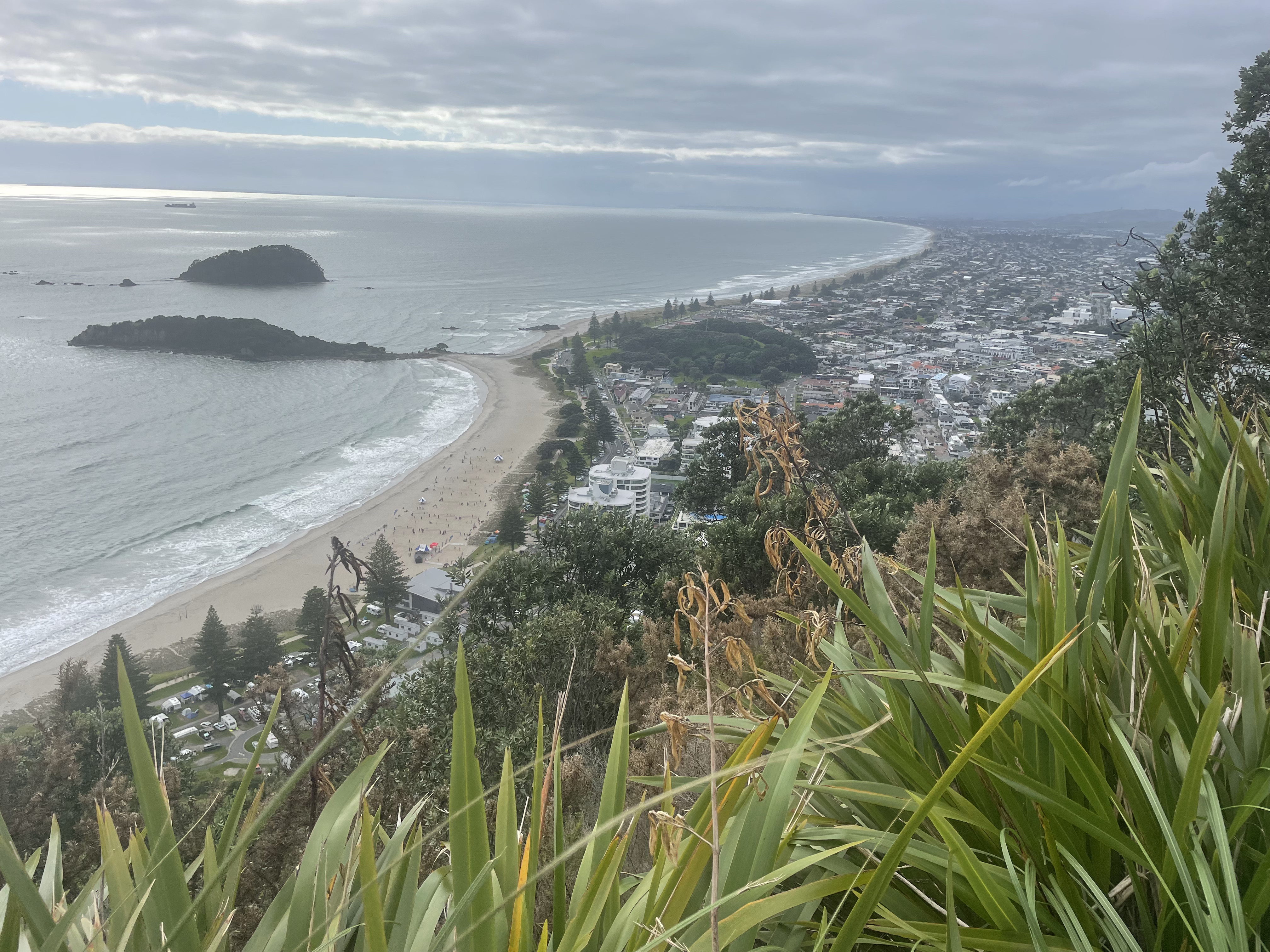 Et au bout de cette plage vers l’ouest, le Mont Maunganui (le Mont-Royal du coin, référence pour les montréalais.es) lieu de randonnées des habitants du coin les fins de semaine et incontournable pour tous les touristes de passage car la vue au sommet de cette petite montagne est à 360 degrés.