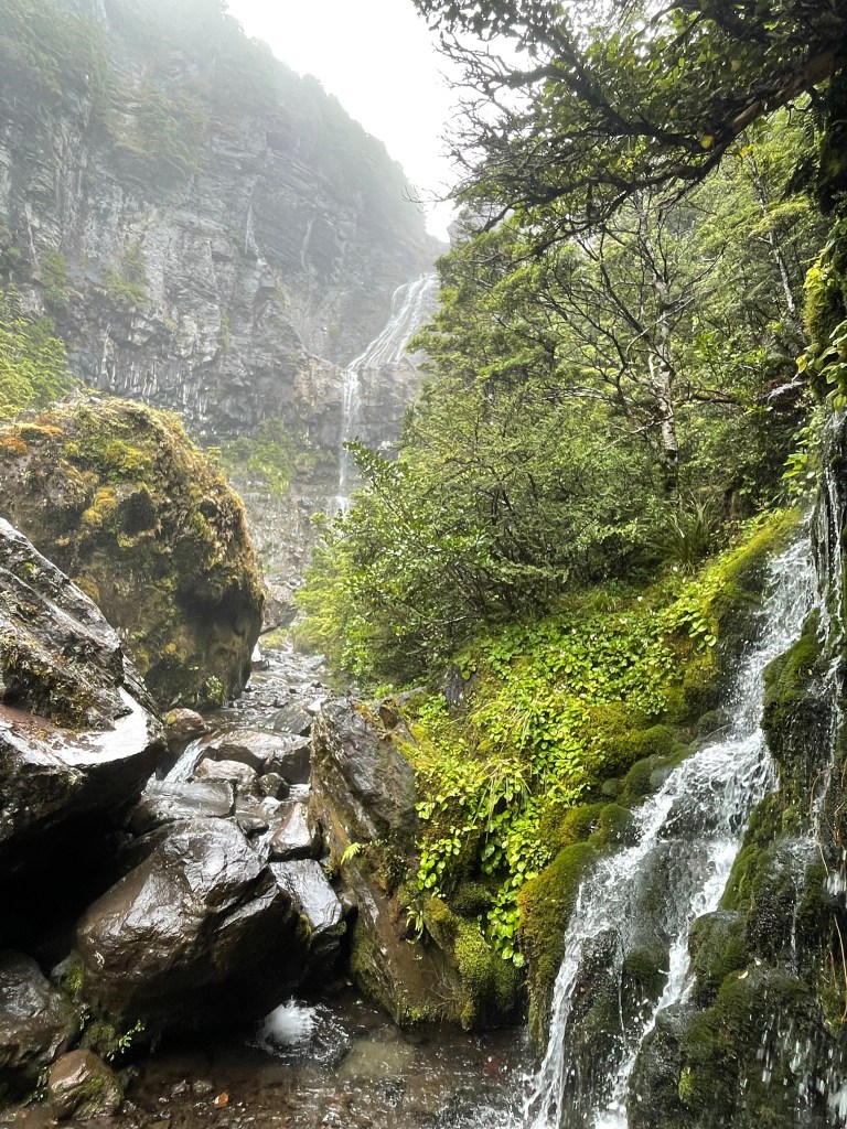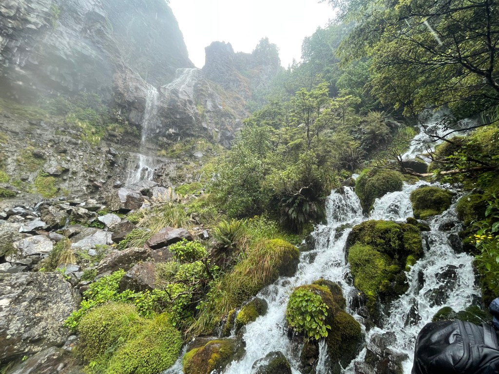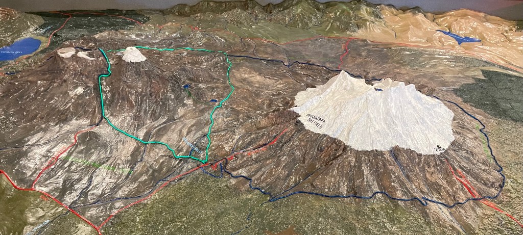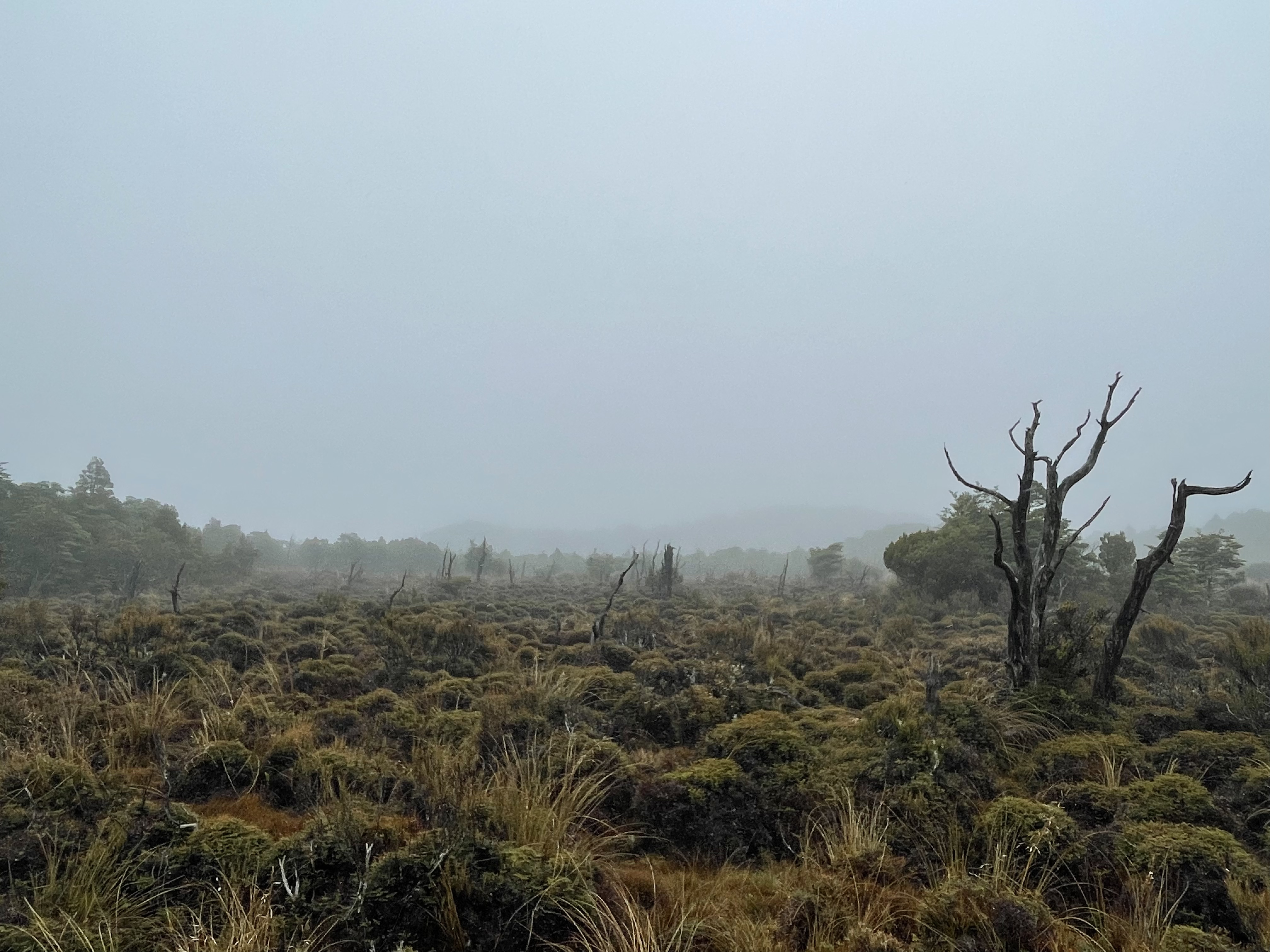 Parc national au centre de l’Île du Nord offrant la possibilité de voir trois magnifiques volcans. Voir ? Hum… pas vraiment. Car la météo alpine ne permet pas souvent de les voir, ces trois volcans. Notre plan de faire le Tongariro Northern Circuit, un parcours de 50 km en 3 jours et deux nuits sous la tente (car plus de place en refuge), est parti au vent (trop de vent) et tombé à l’eau (trop de pluie) et trop mauvaise visibilité. Impossible de s’y aventurer. Même la randonnée d’une journée, Tongariro Alpine Crossing, n’est pas recommandée.