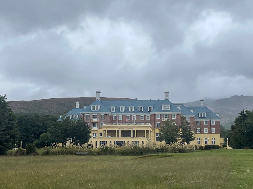 Et planté dans ce décor lunaire, à l’entrée de Whakapapa Village, cet hôtel appelé Chateau Tongariro, qui ressemble étrangement au Grand Budapest Hotel.