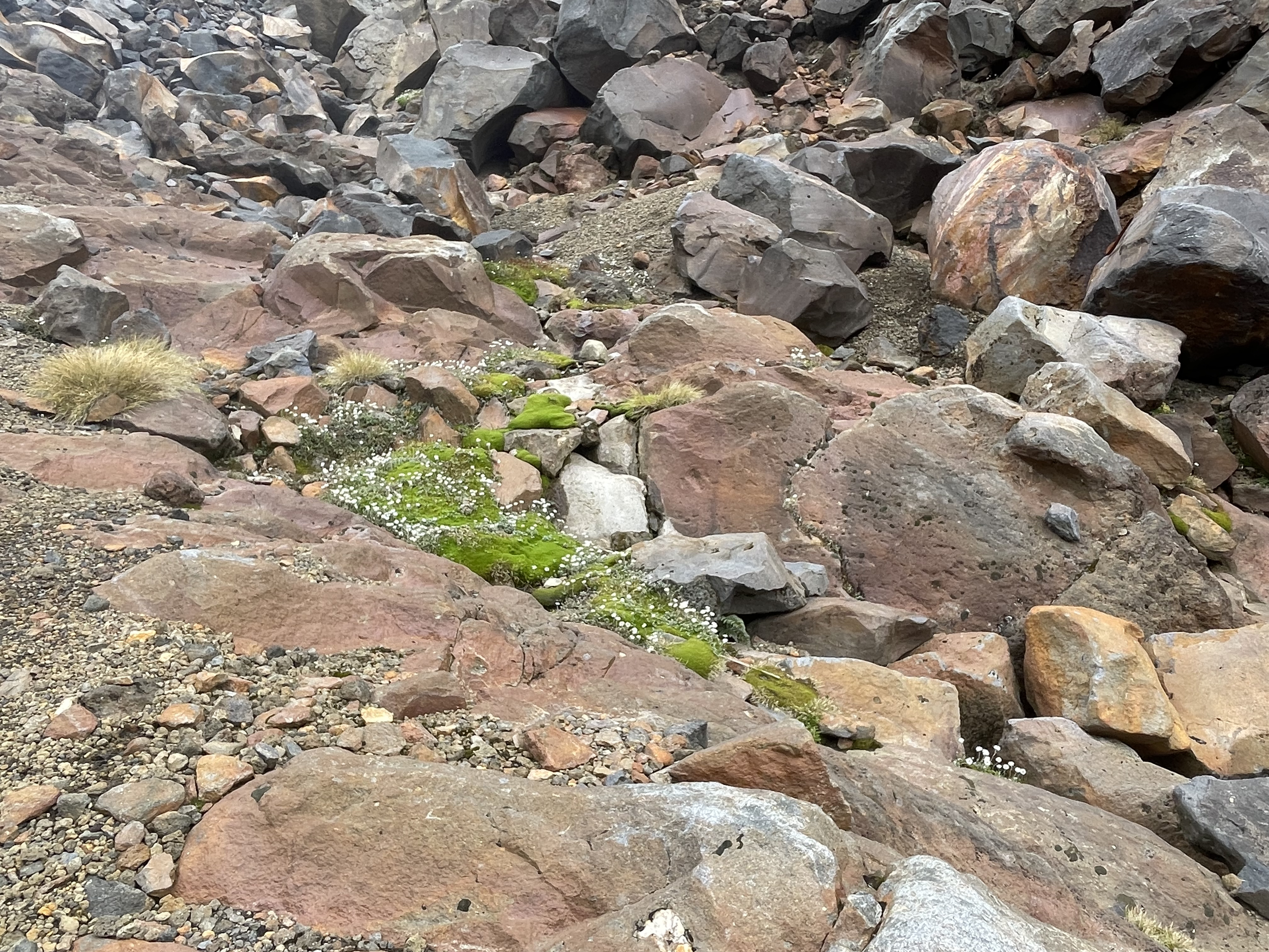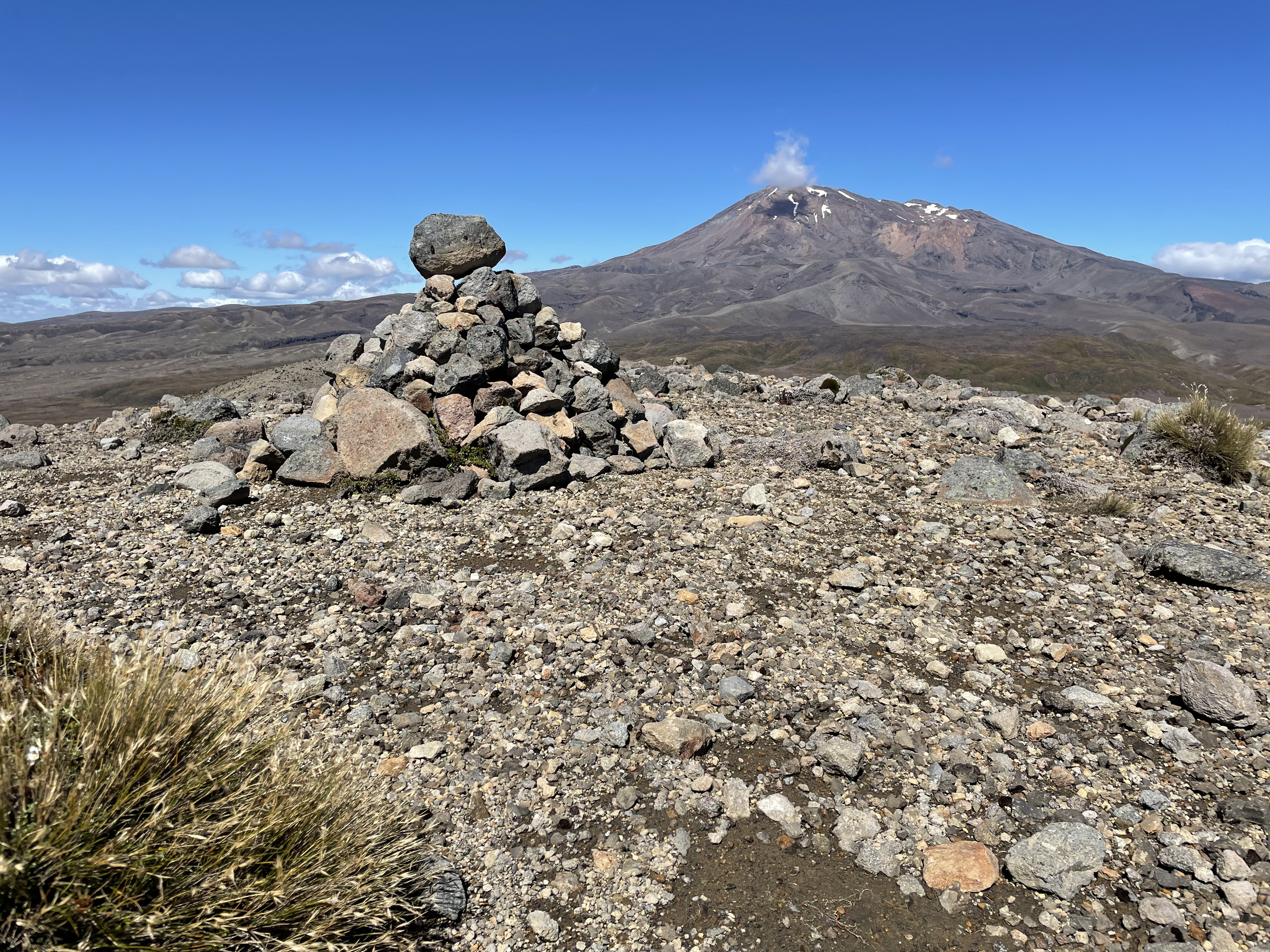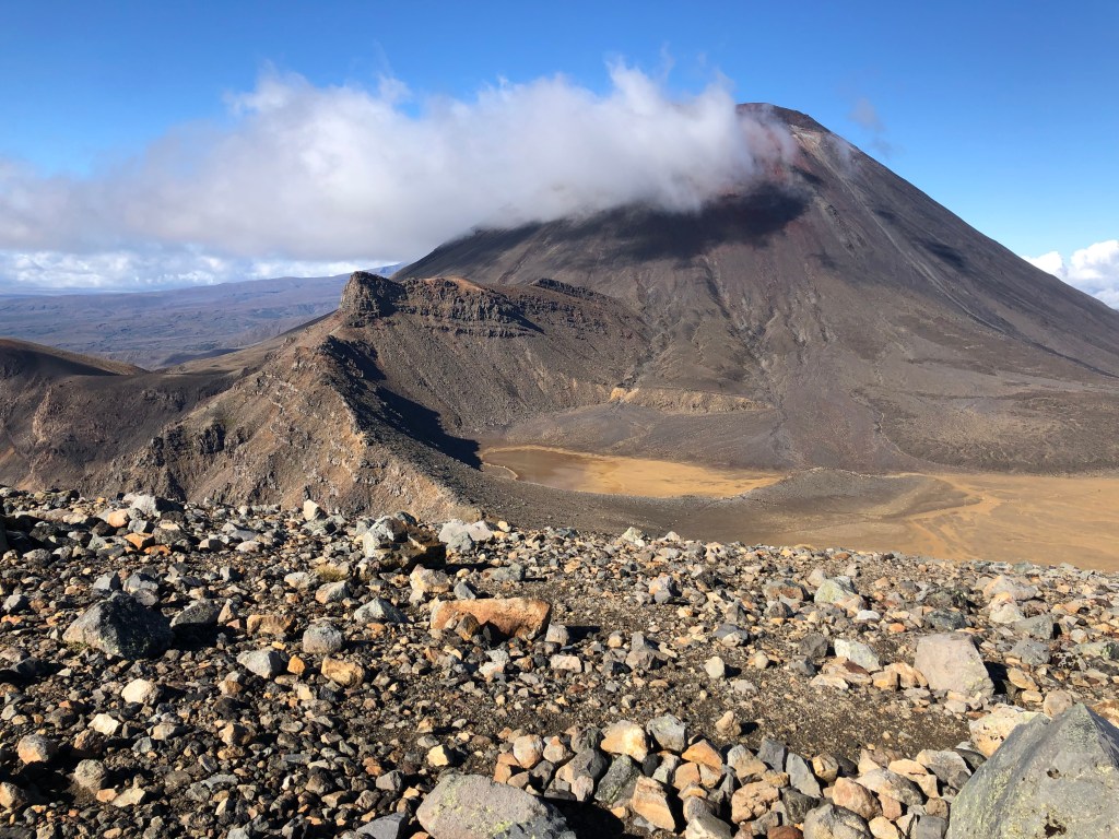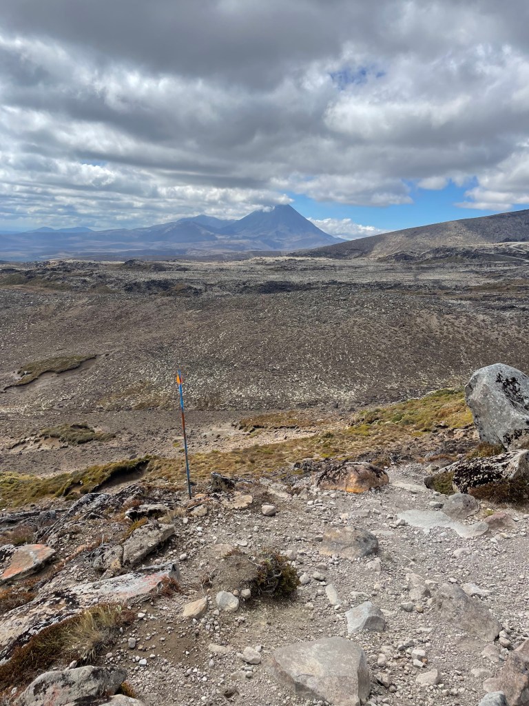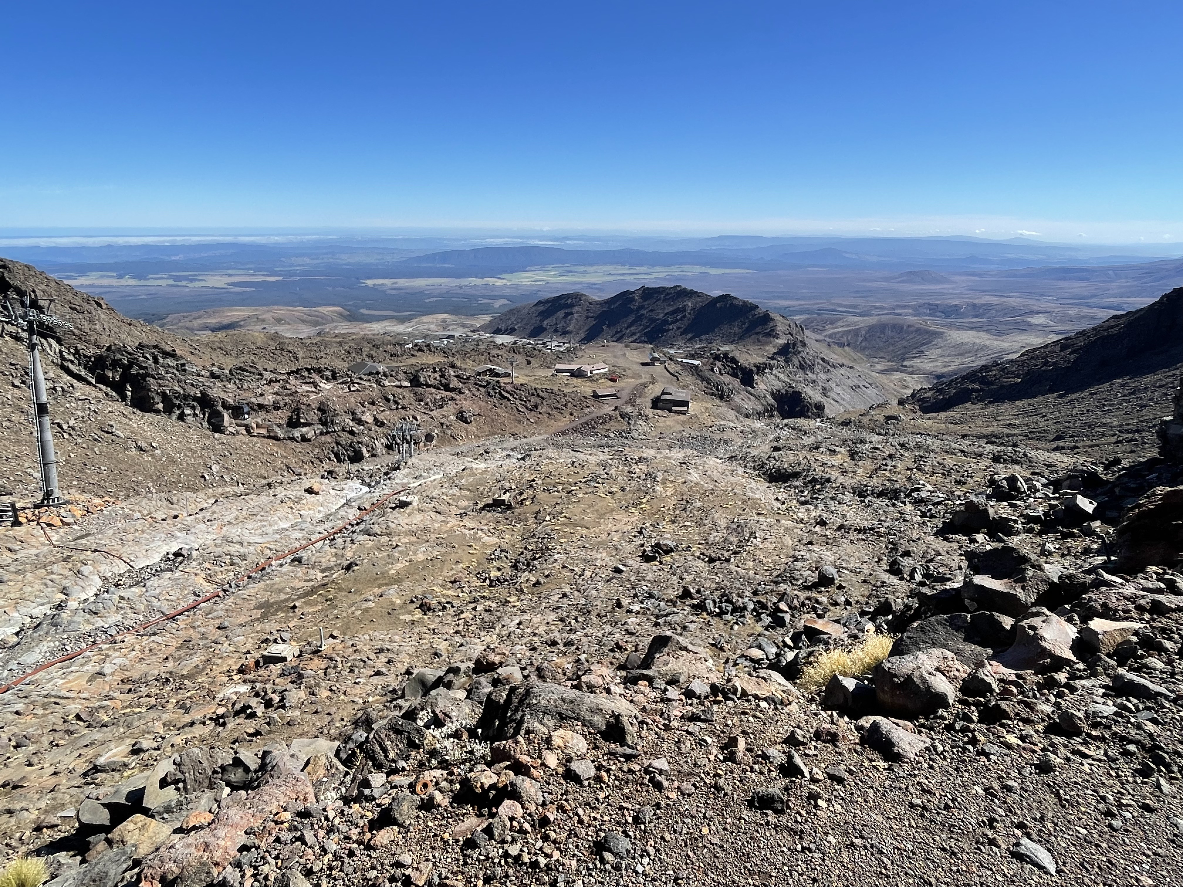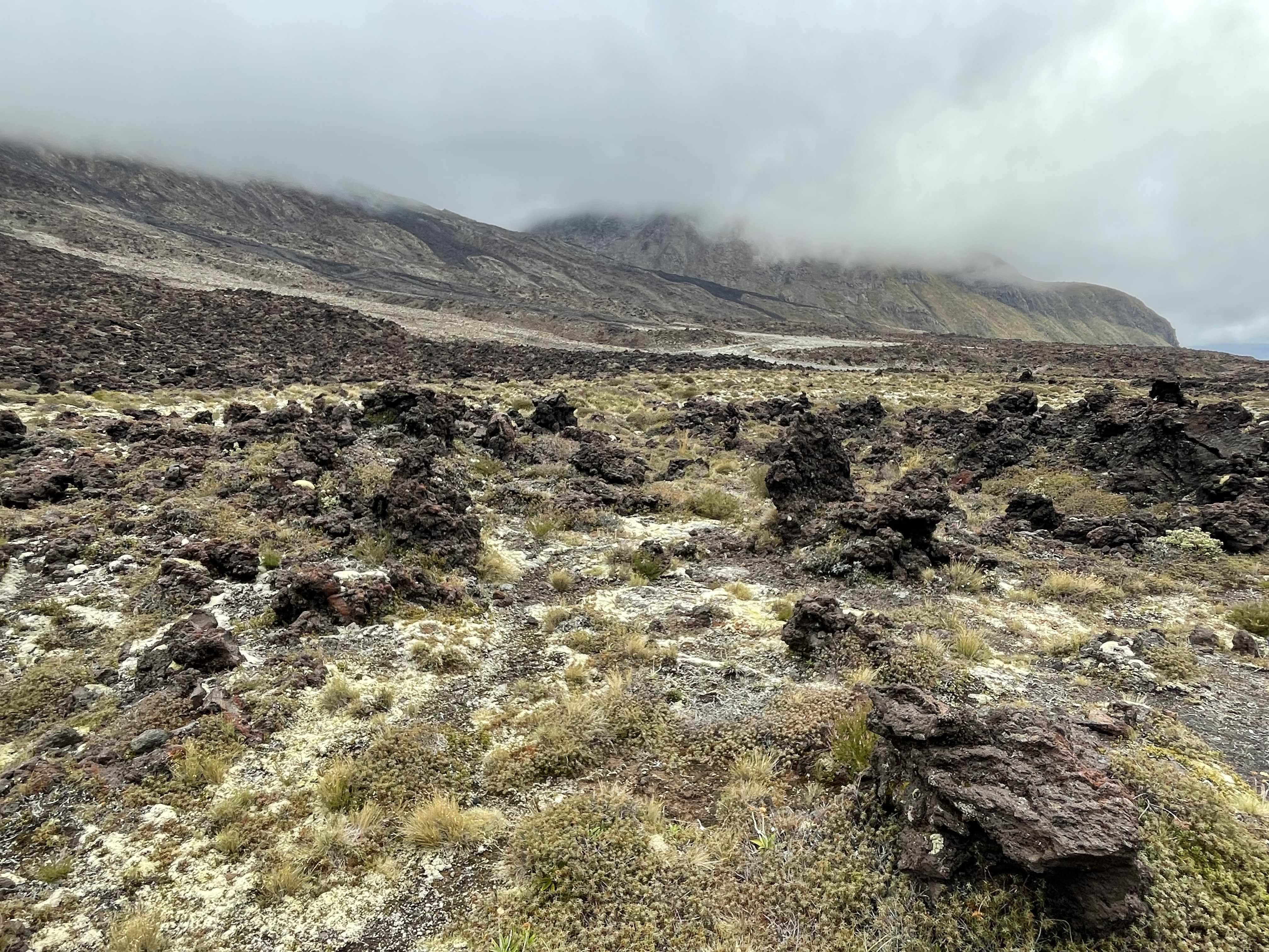 Au bout de la route, la station de ski Whakapapa qui n’est qu’une station de rochers et de cailloux en été. Quelques sentiers se faufilent dans ces dédales minéraux. Nous n’arriverons jamais au « Summit of Dome » pour cause de nuages se profilant à l’horizon et d’heure tardive pour aborder la dernière ascension dans les rochers vers le sommet (si c’était vraiment la dernière ascension car ces montagnes cachent souvent un autre sommet après chaque sommet !) mais vues à couper le souffle tout de même, avec toujours le volcan Tongariro en point de mire.