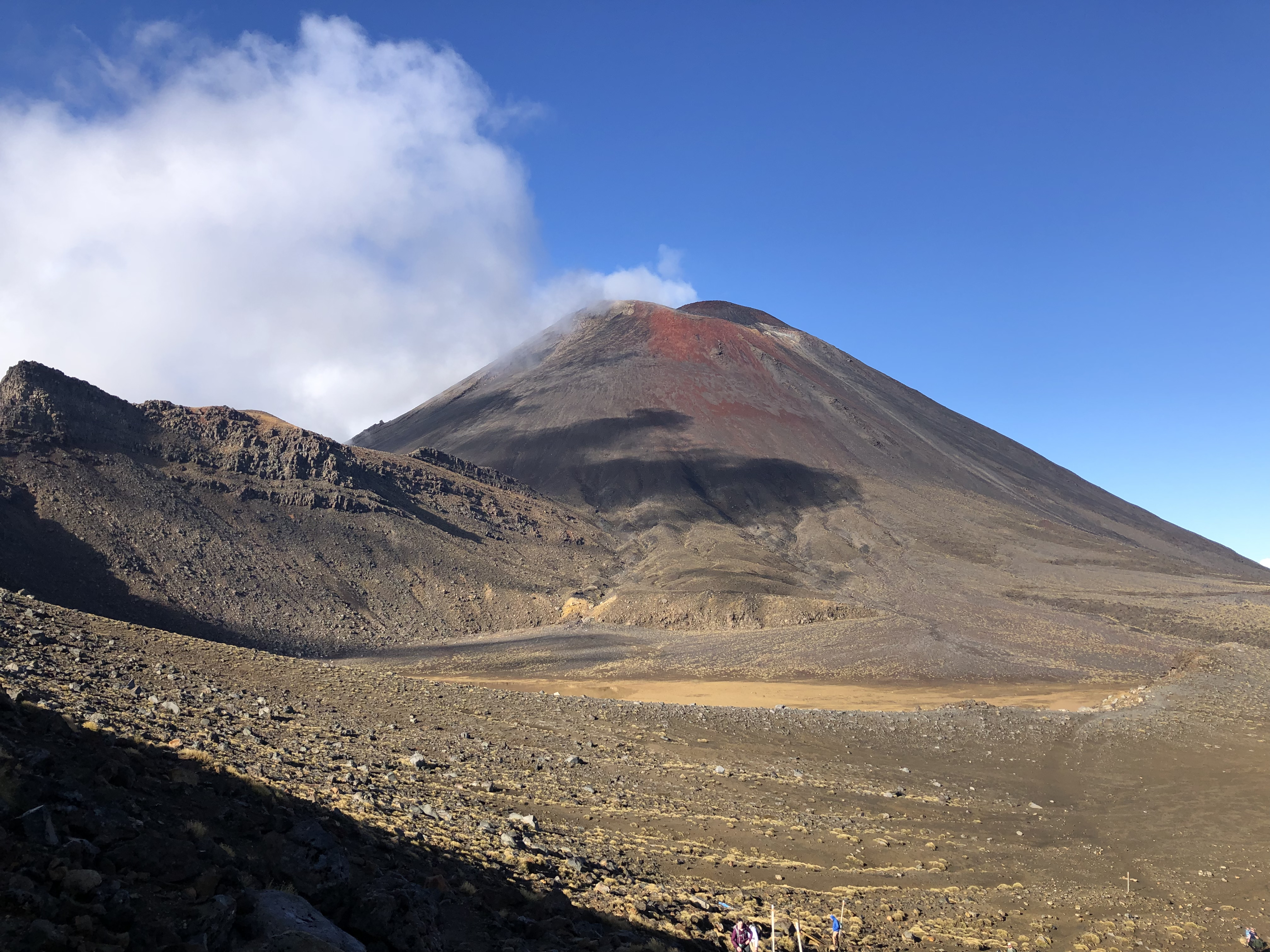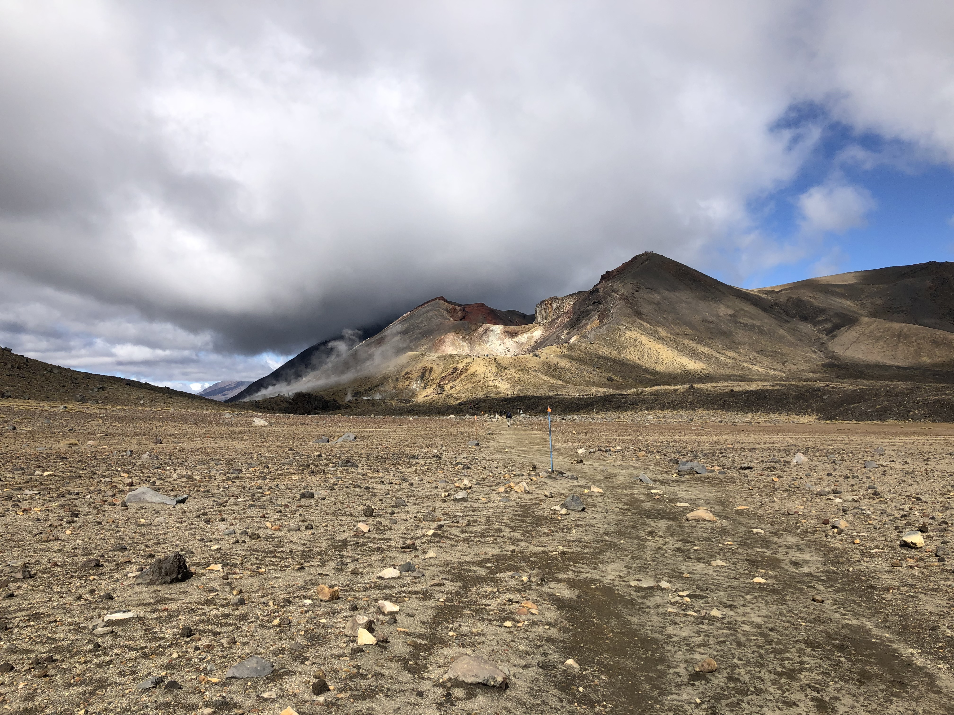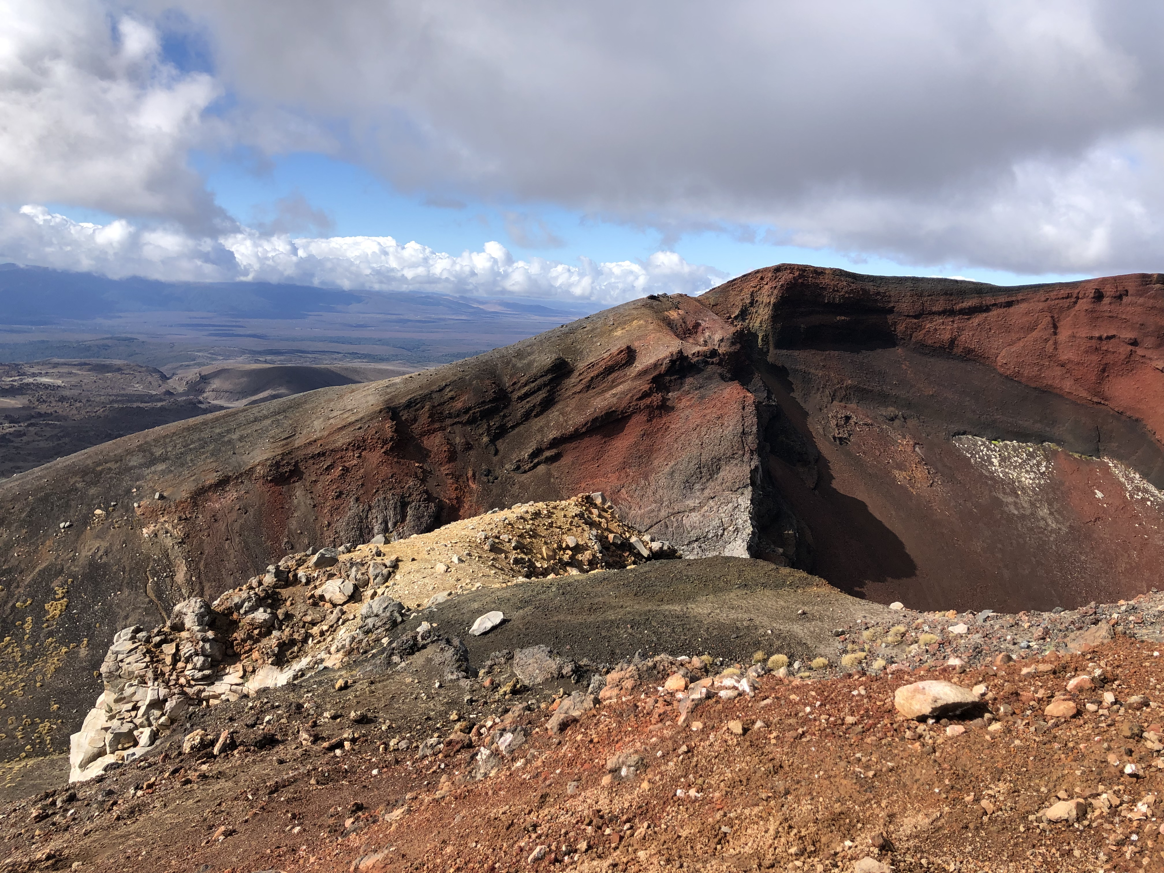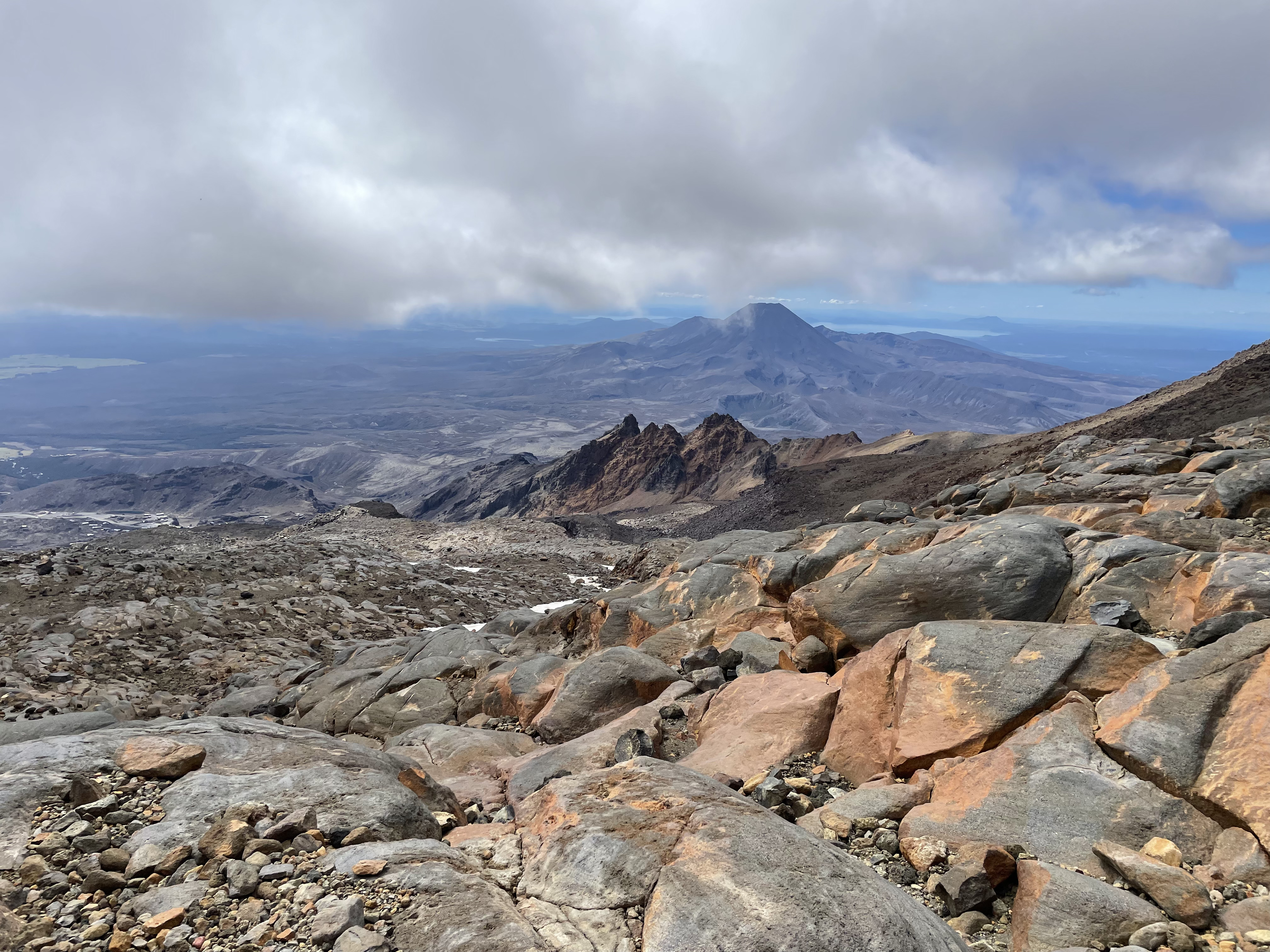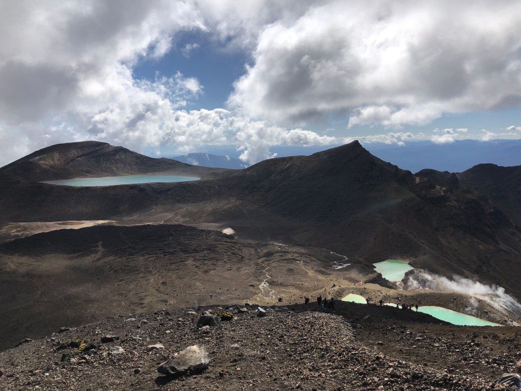 Au bout de la route, la station de ski Whakapapa qui n’est qu’une station de rochers et de cailloux en été. Quelques sentiers se faufilent dans ces dédales minéraux. Nous n’arriverons jamais au « Summit of Dome » pour cause de nuages se profilant à l’horizon et d’heure tardive pour aborder la dernière ascension dans les rochers vers le sommet (si c’était vraiment la dernière ascension car ces montagnes cachent souvent un autre sommet après chaque sommet !) mais vues à couper le souffle tout de même, avec toujours le volcan Tongariro en point de mire.
