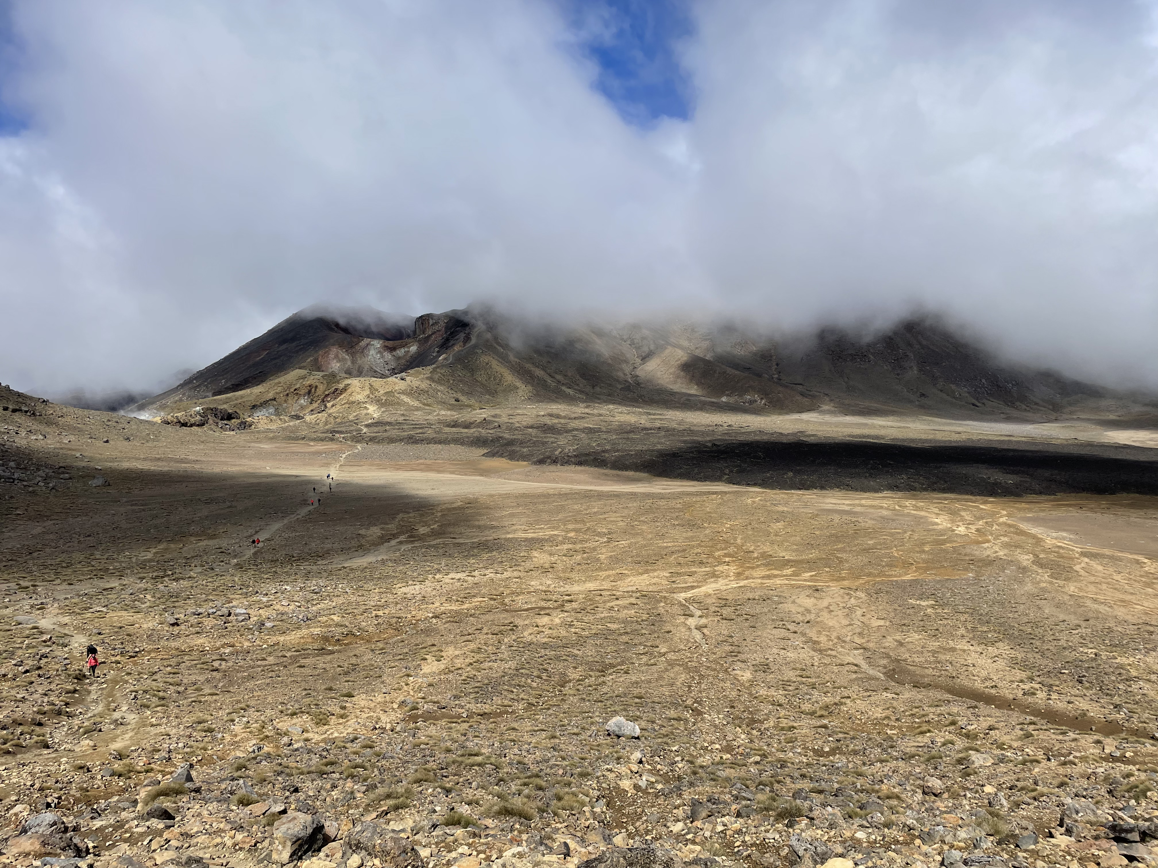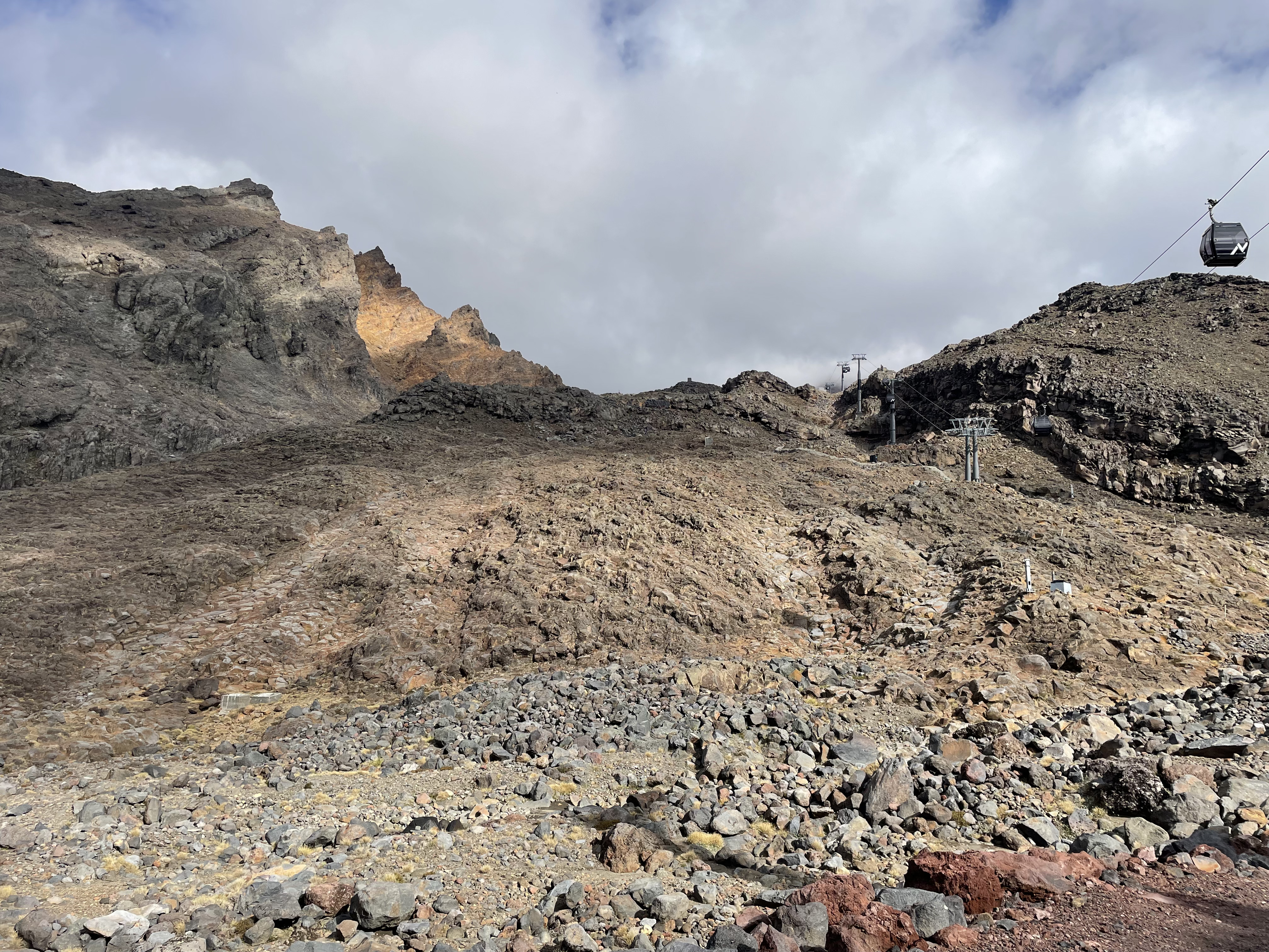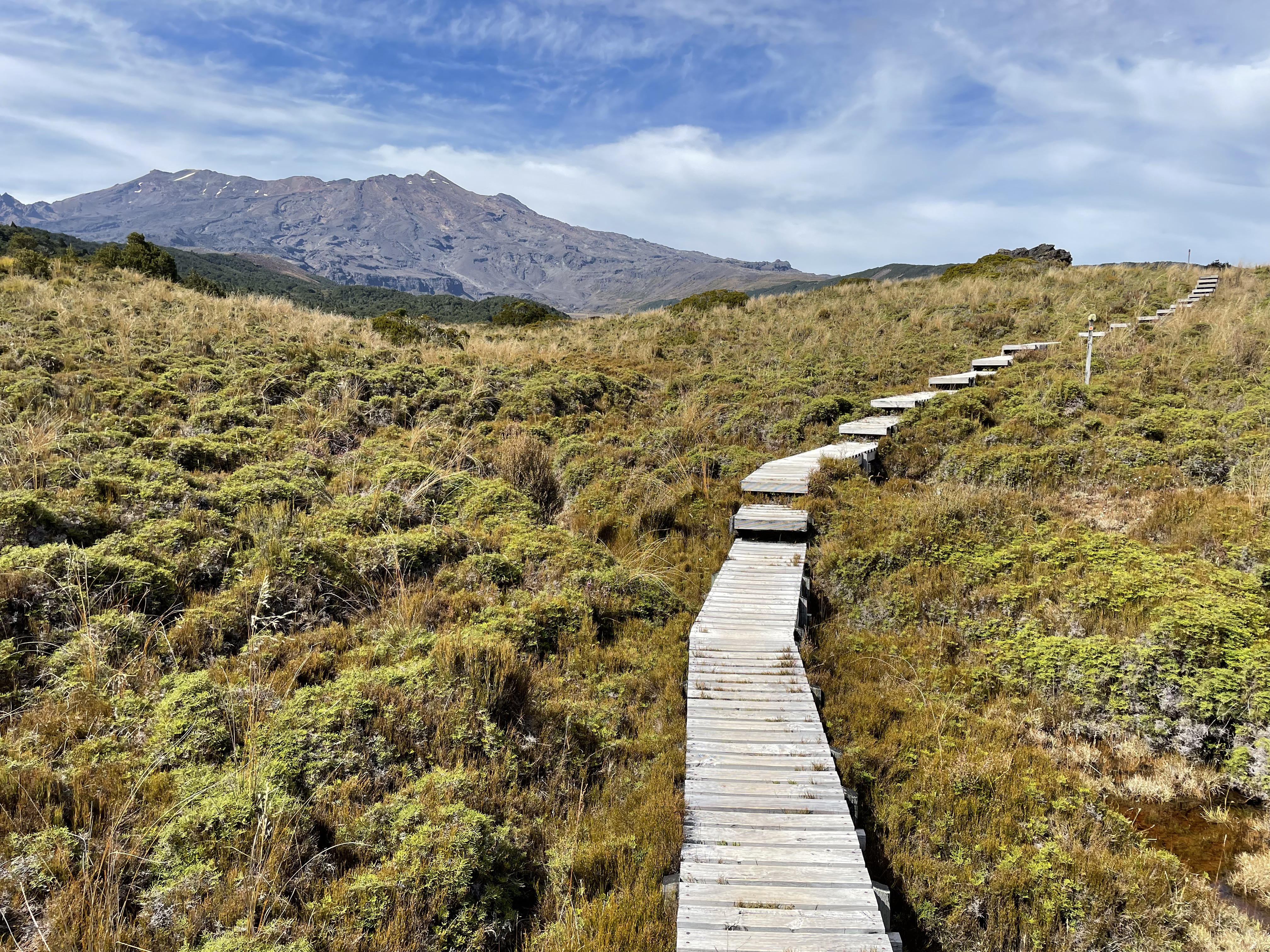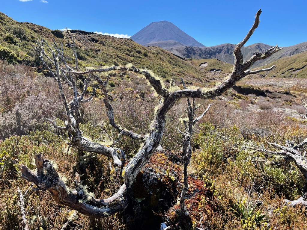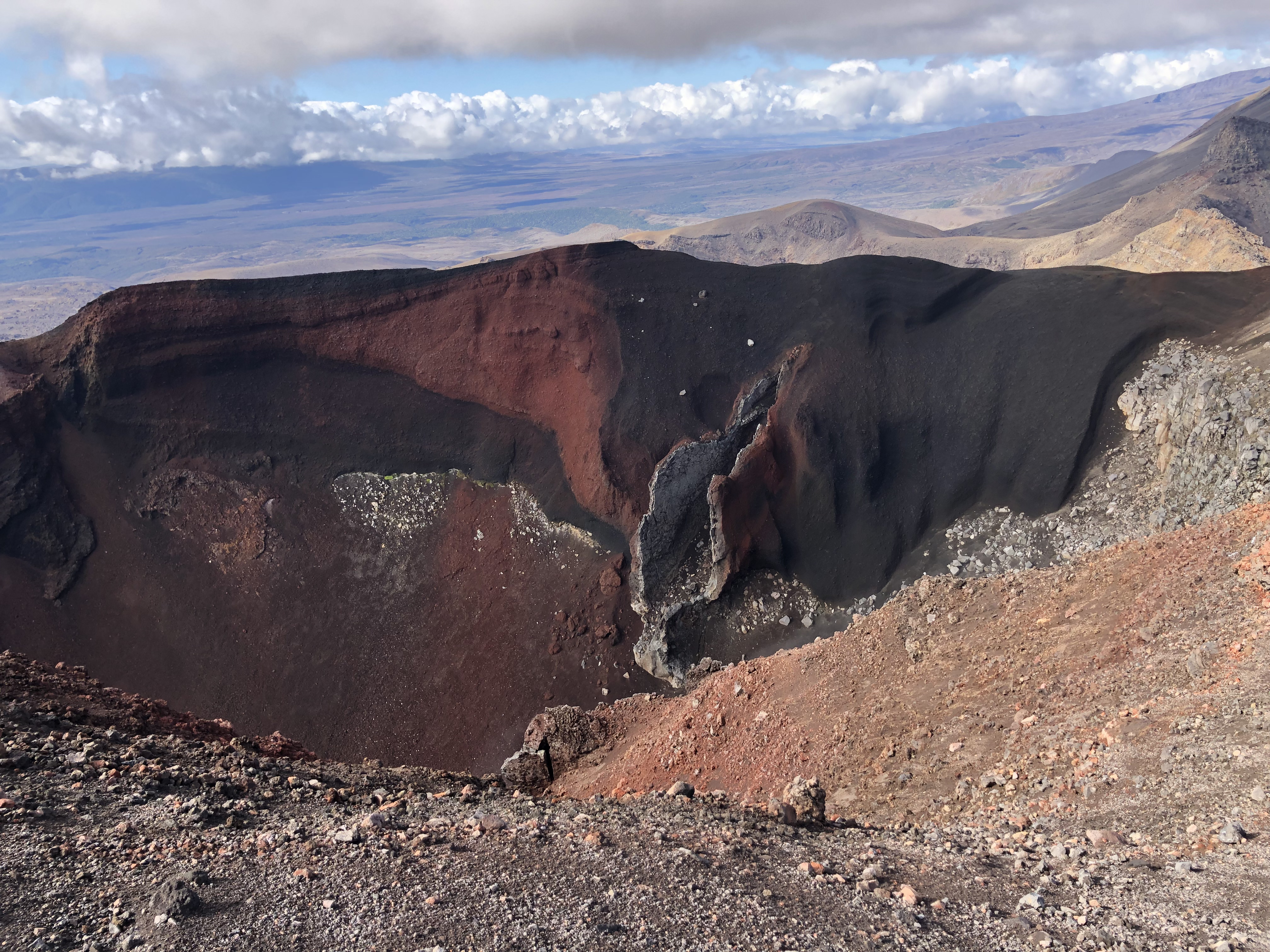 Au bout de la route, la station de ski Whakapapa qui n’est qu’une station de rochers et de cailloux en été. Quelques sentiers se faufilent dans ces dédales minéraux. Nous n’arriverons jamais au « Summit of Dome » pour cause de nuages se profilant à l’horizon et d’heure tardive pour aborder la dernière ascension dans les rochers vers le sommet (si c’était vraiment la dernière ascension car ces montagnes cachent souvent un autre sommet après chaque sommet !) mais vues à couper le souffle tout de même, avec toujours le volcan Tongariro en point de mire.