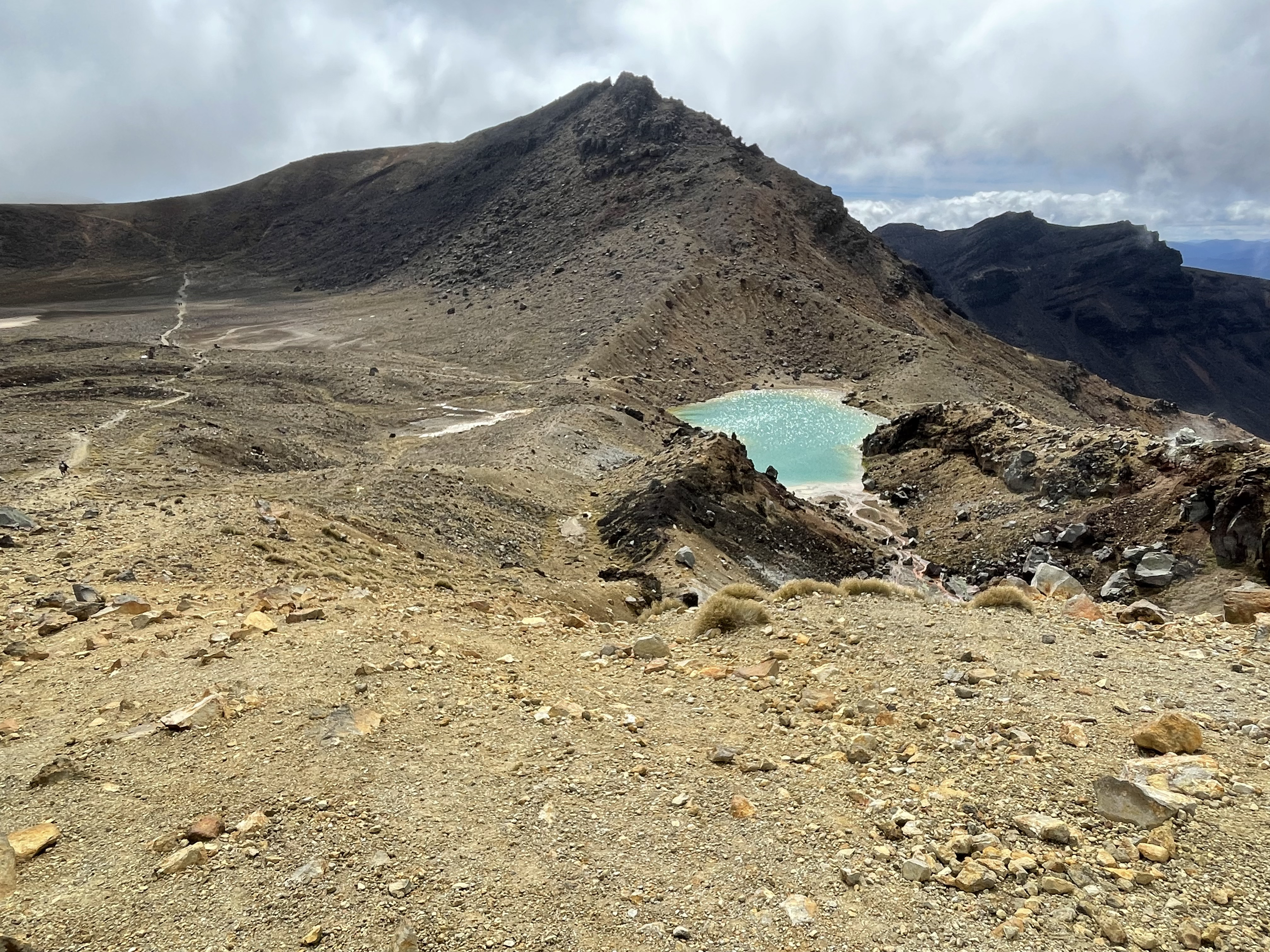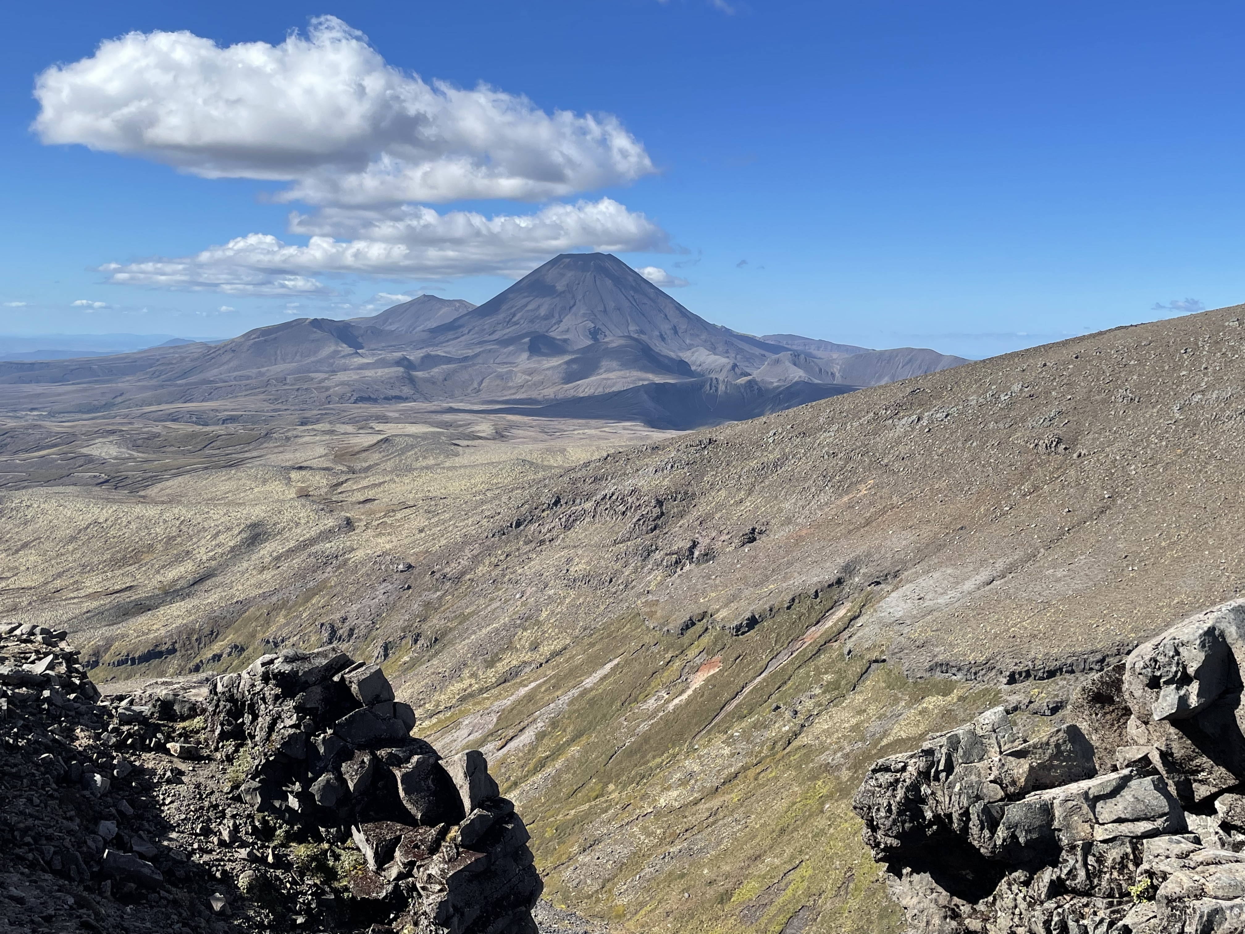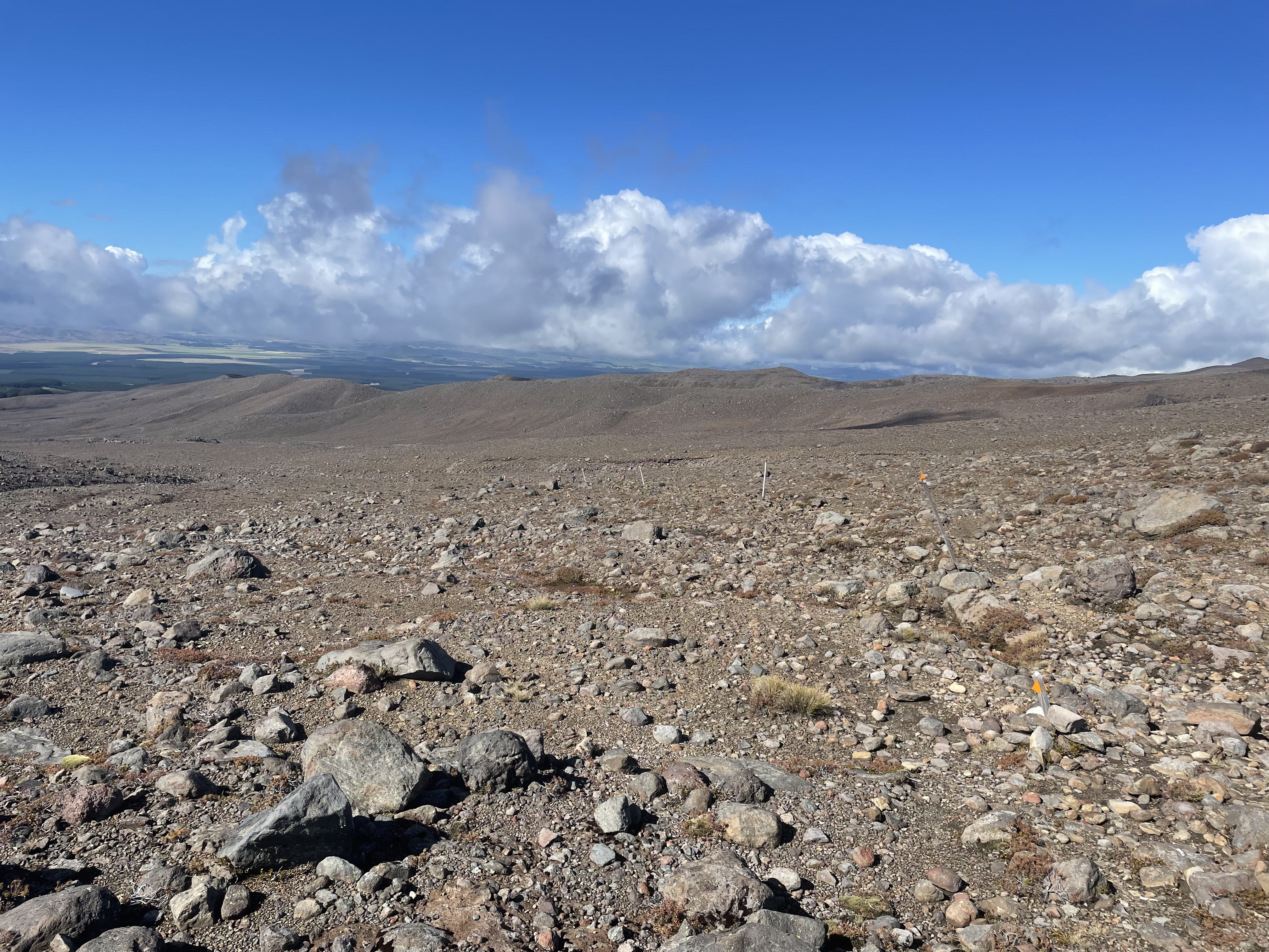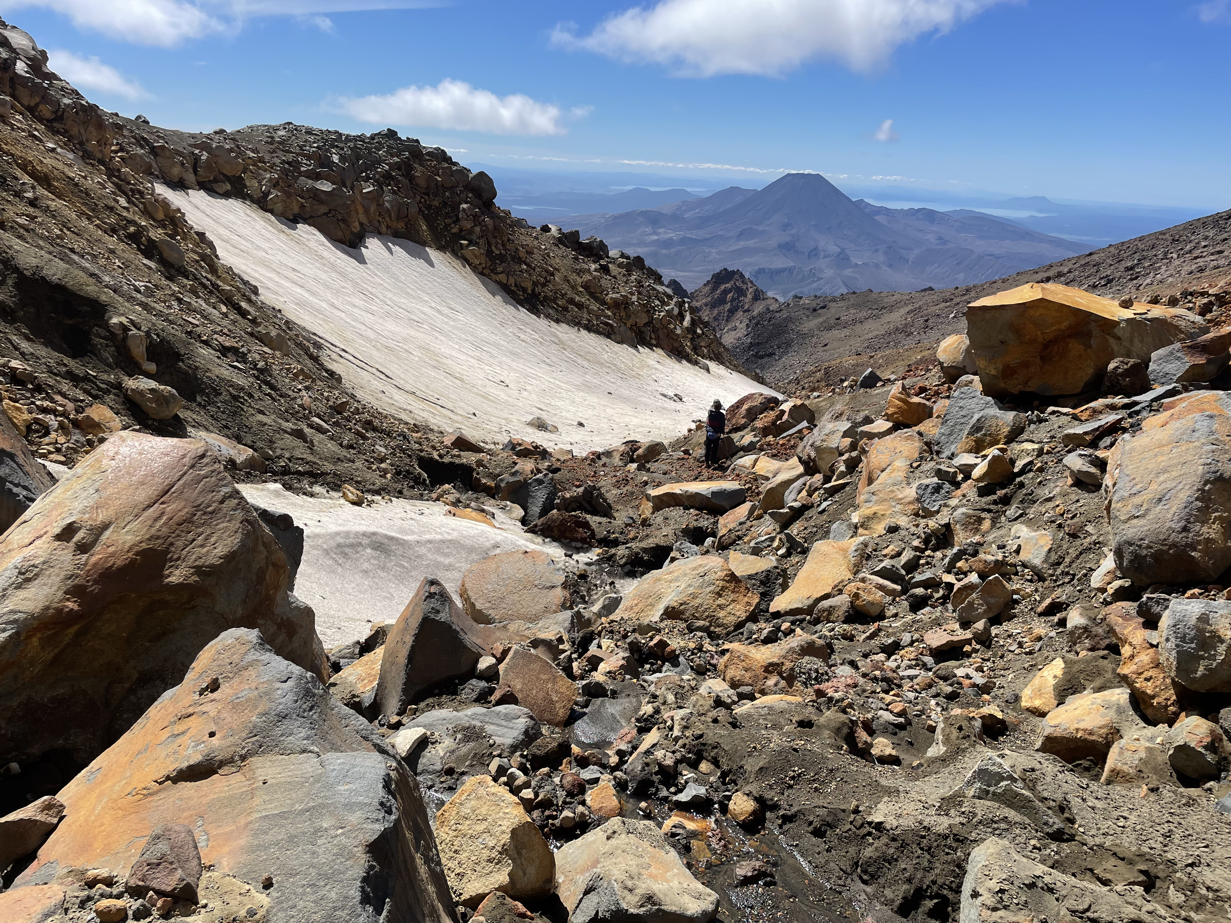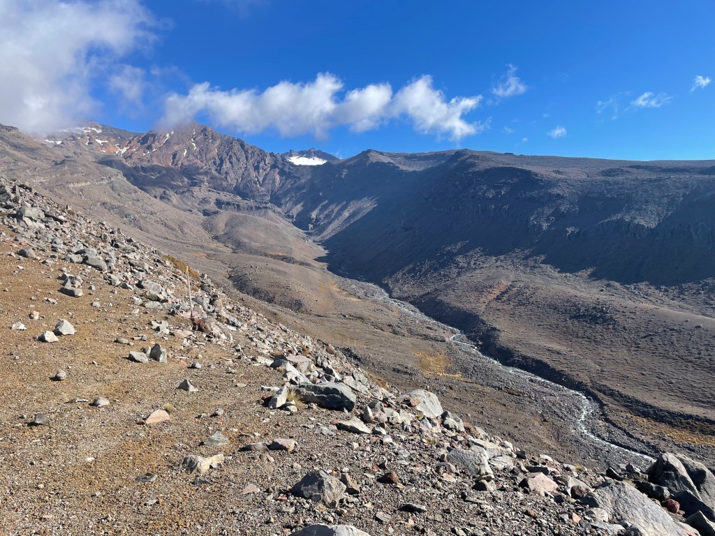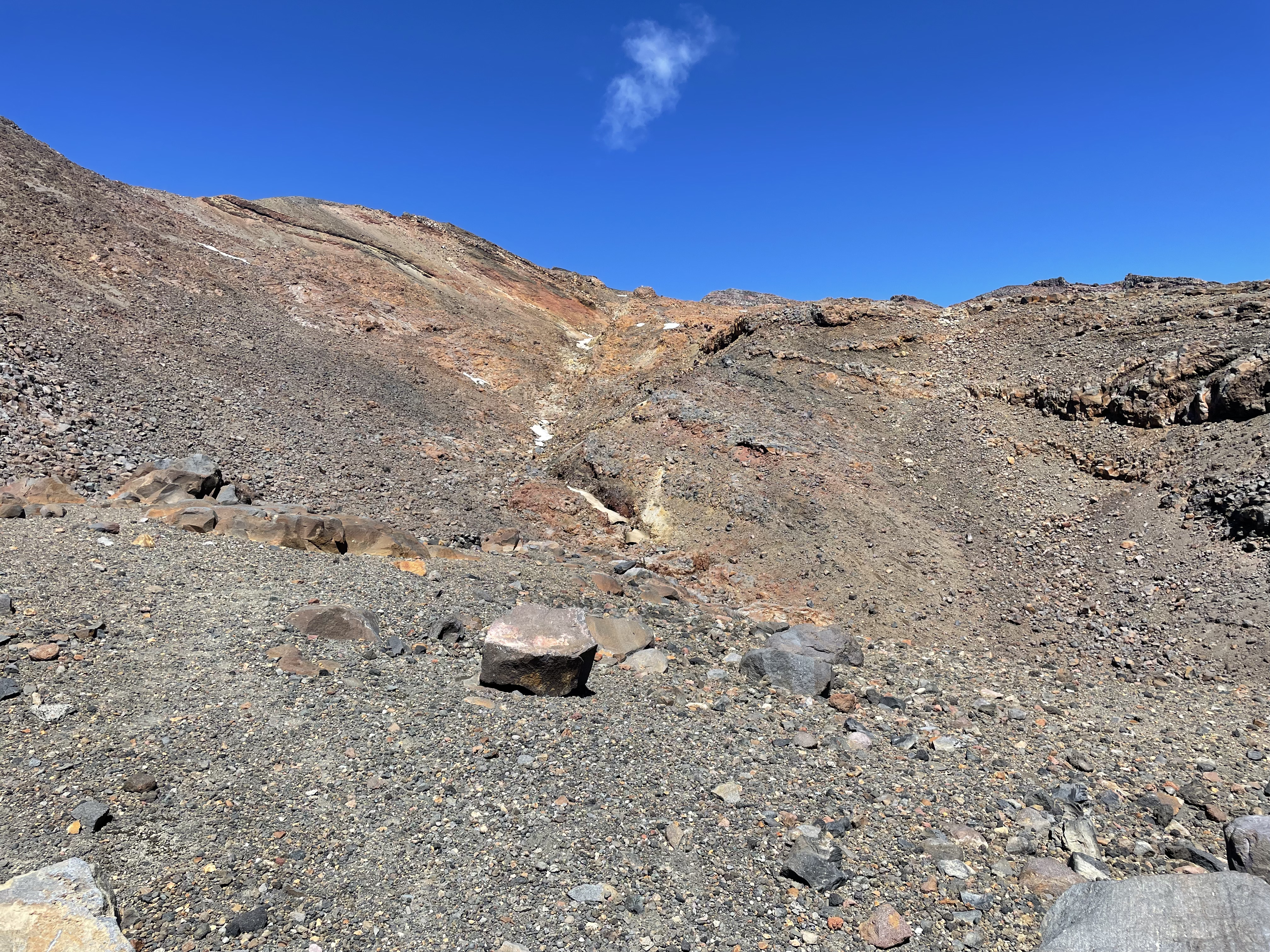 Au bout de la route, la station de ski Whakapapa qui n’est qu’une station de rochers et de cailloux en été. Quelques sentiers se faufilent dans ces dédales minéraux. Nous n’arriverons jamais au « Summit of Dome » pour cause de nuages se profilant à l’horizon et d’heure tardive pour aborder la dernière ascension dans les rochers vers le sommet (si c’était vraiment la dernière ascension car ces montagnes cachent souvent un autre sommet après chaque sommet !) mais vues à couper le souffle tout de même, avec toujours le volcan Tongariro en point de mire.