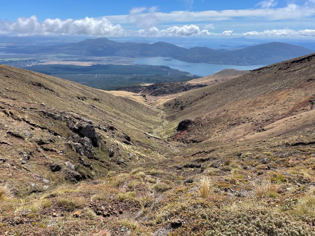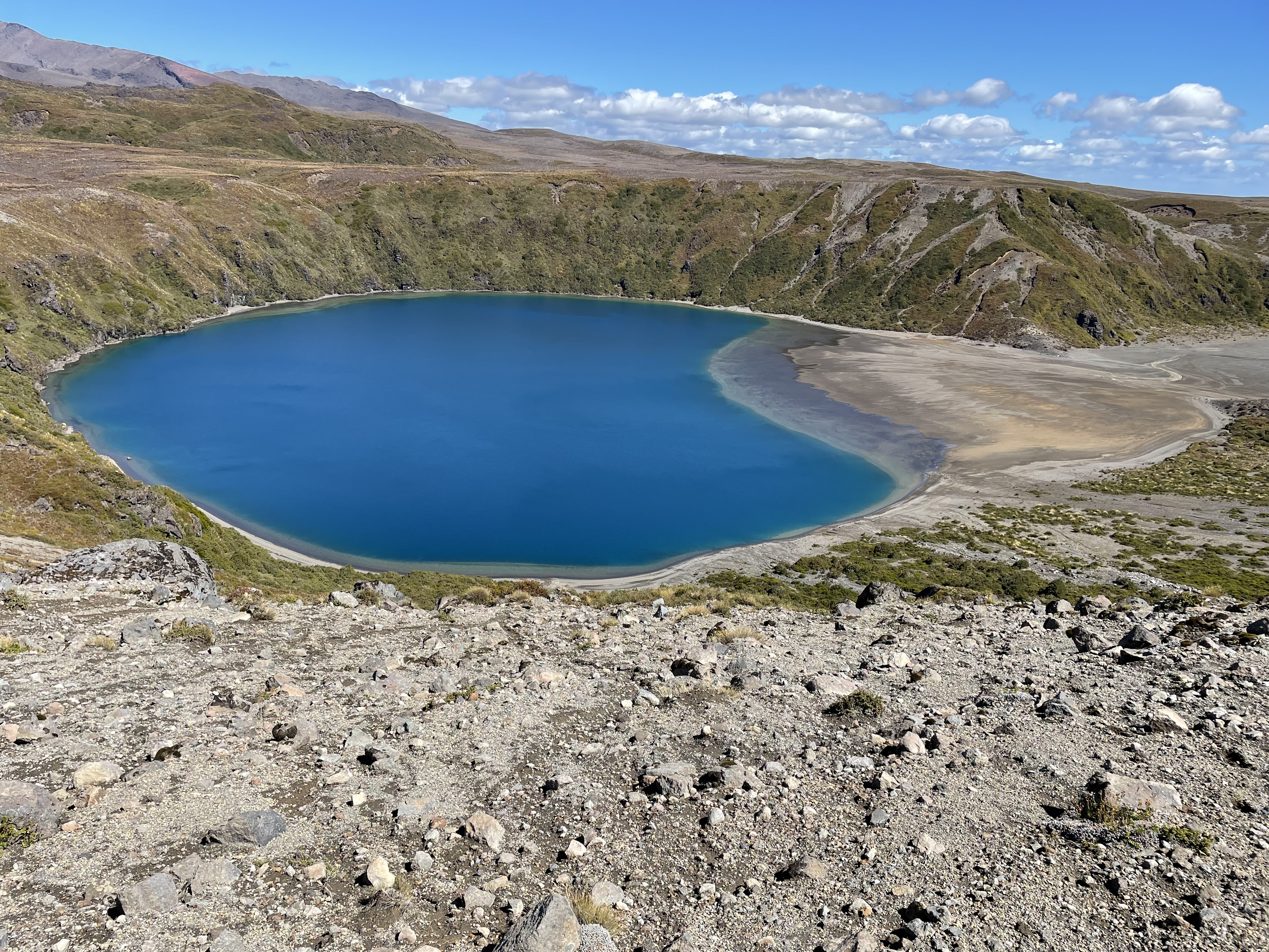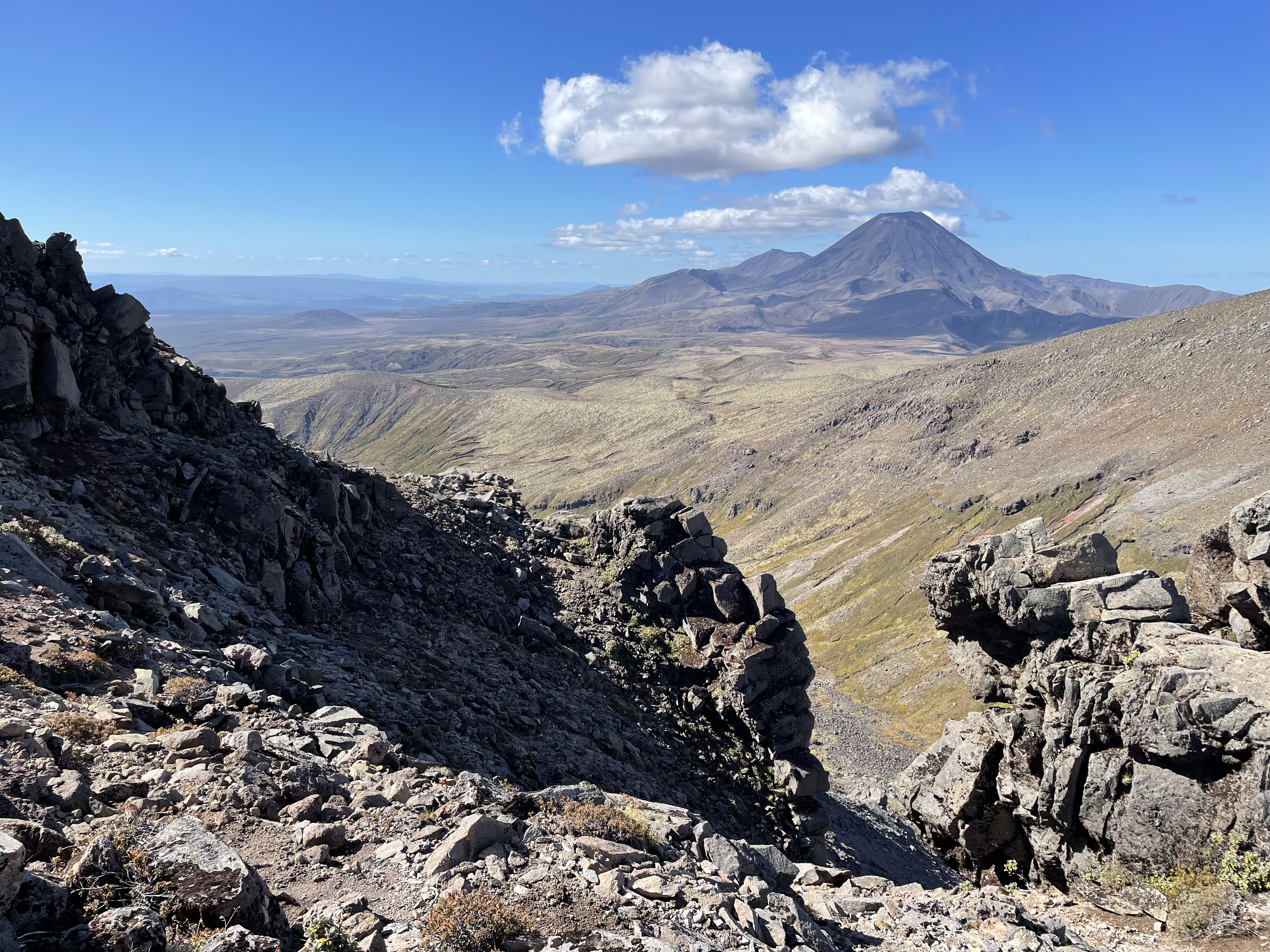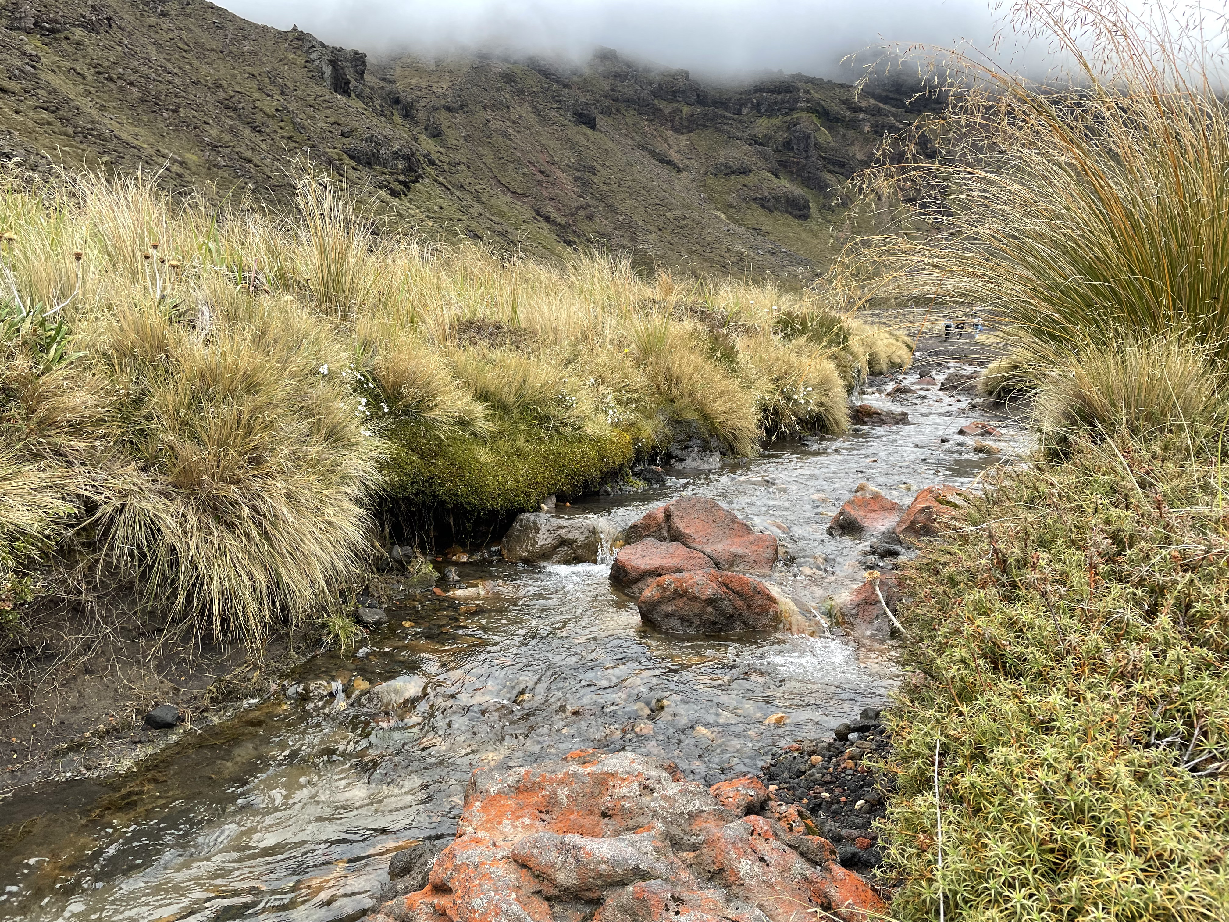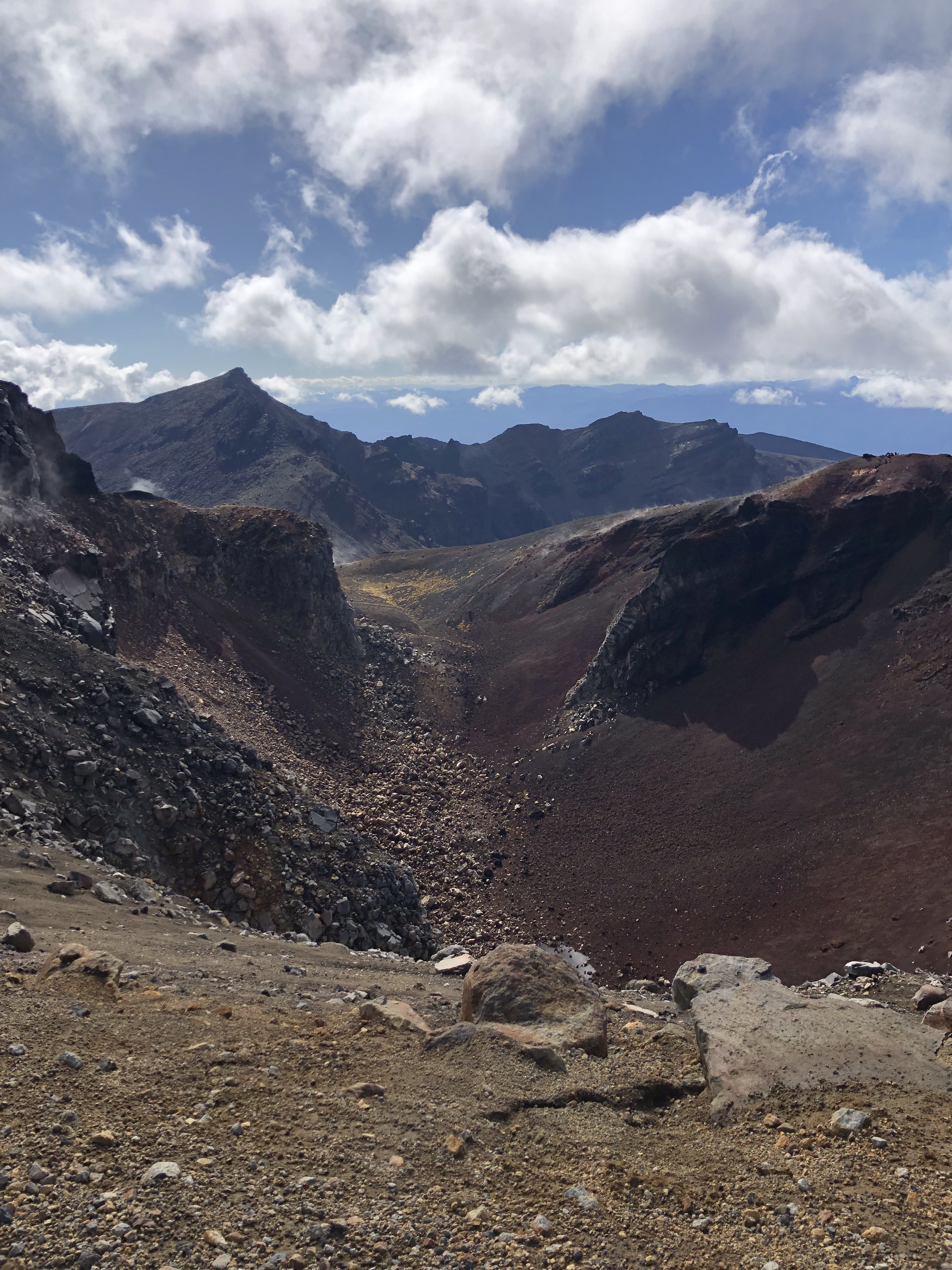 Au bout de la route, la station de ski Whakapapa qui n’est qu’une station de rochers et de cailloux en été. Quelques sentiers se faufilent dans ces dédales minéraux. Nous n’arriverons jamais au « Summit of Dome » pour cause de nuages se profilant à l’horizon et d’heure tardive pour aborder la dernière ascension dans les rochers vers le sommet (si c’était vraiment la dernière ascension car ces montagnes cachent souvent un autre sommet après chaque sommet !) mais vues à couper le souffle tout de même, avec toujours le volcan Tongariro en point de mire.