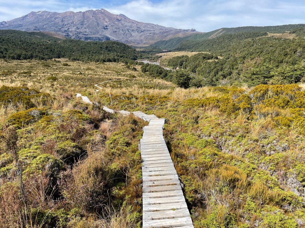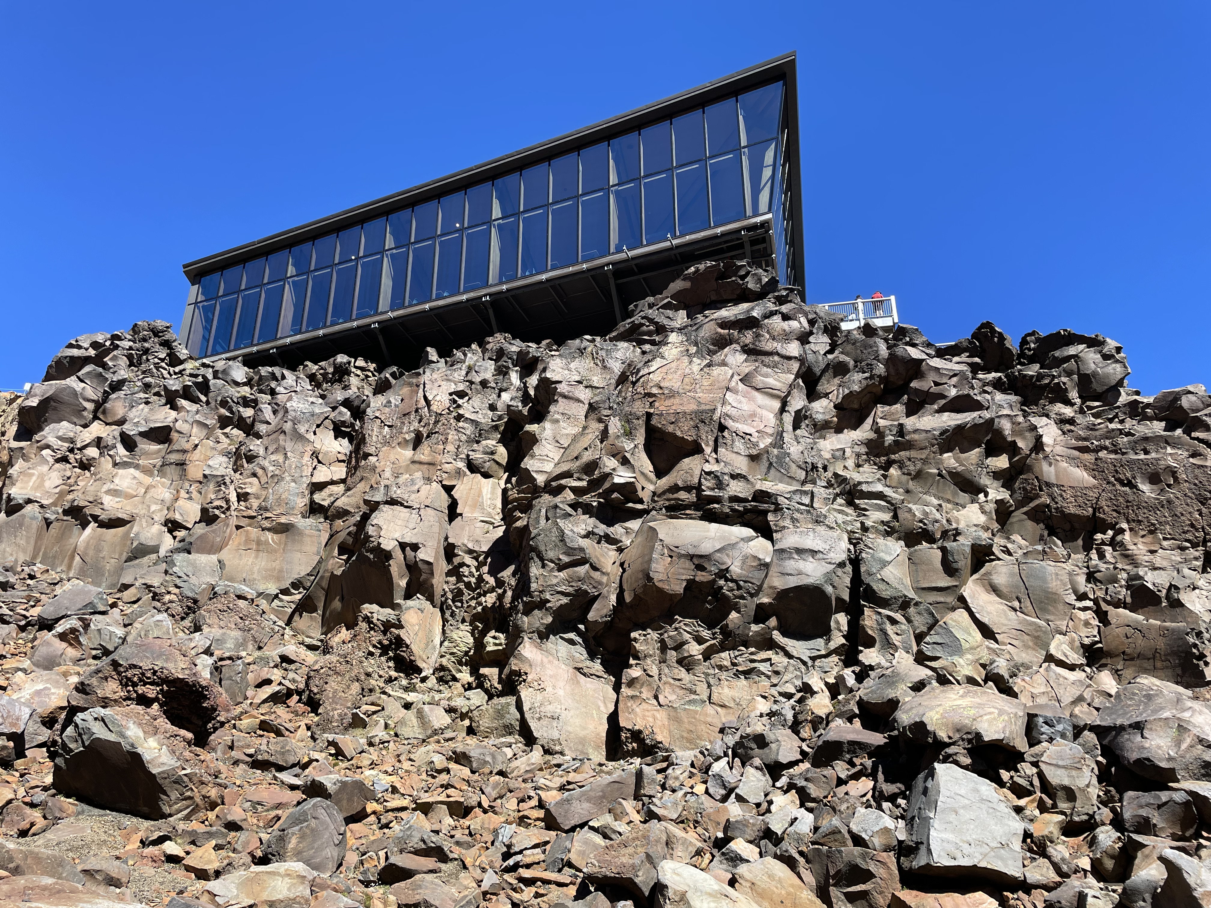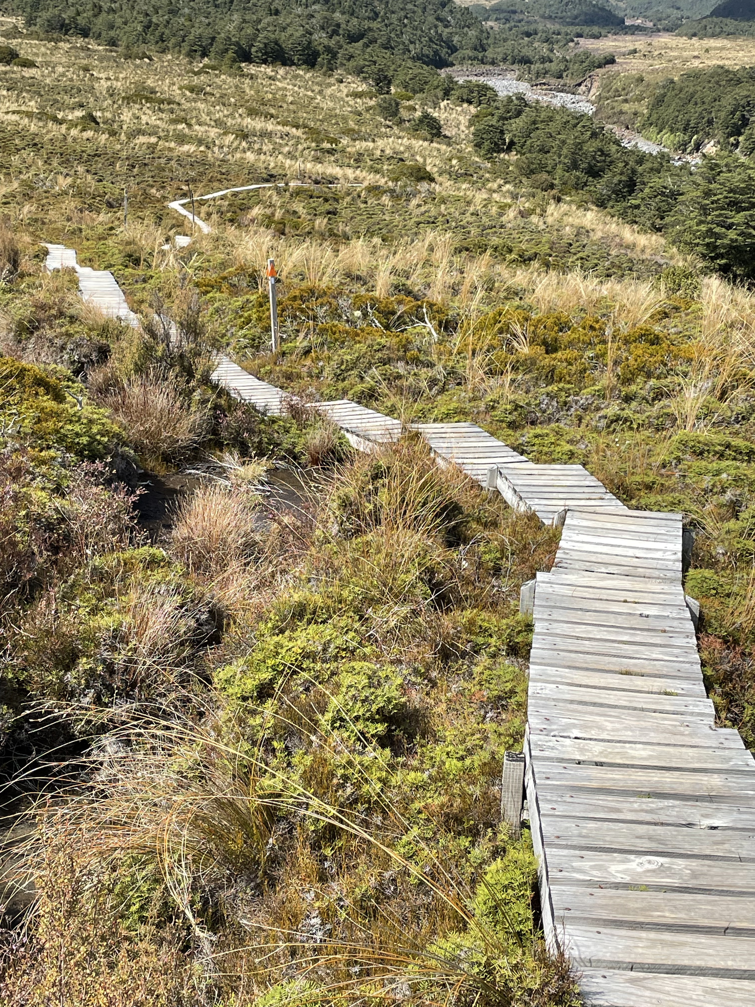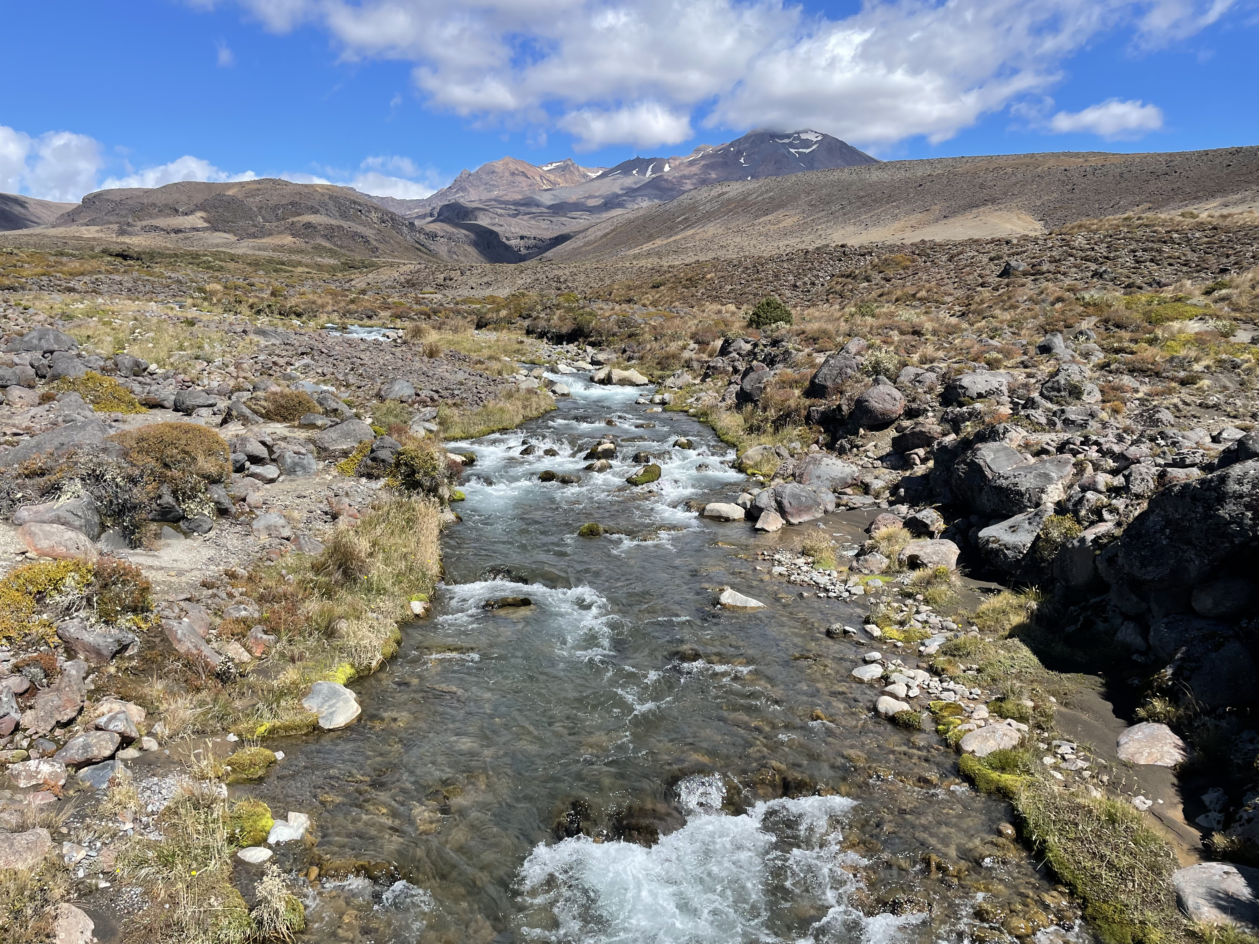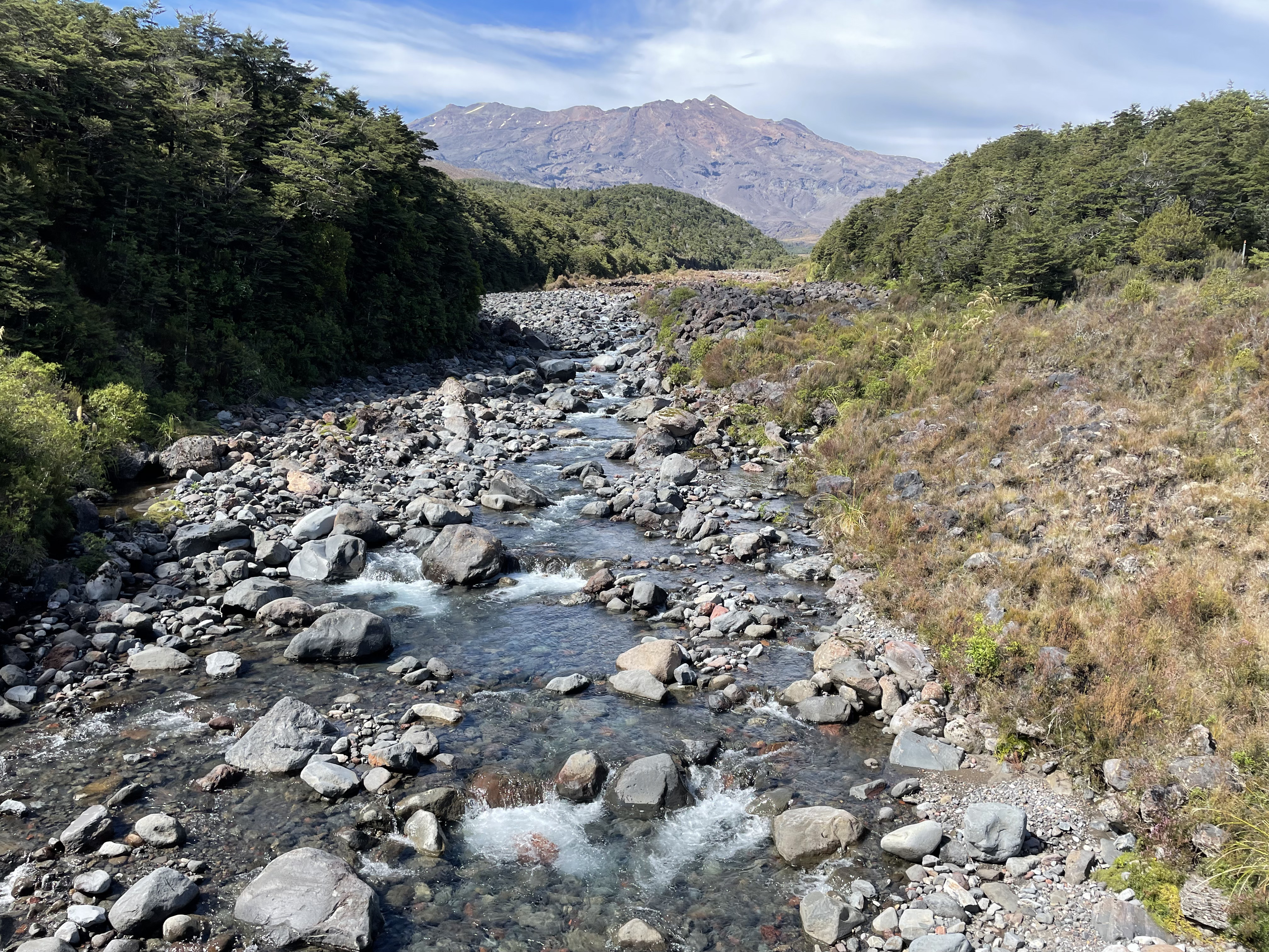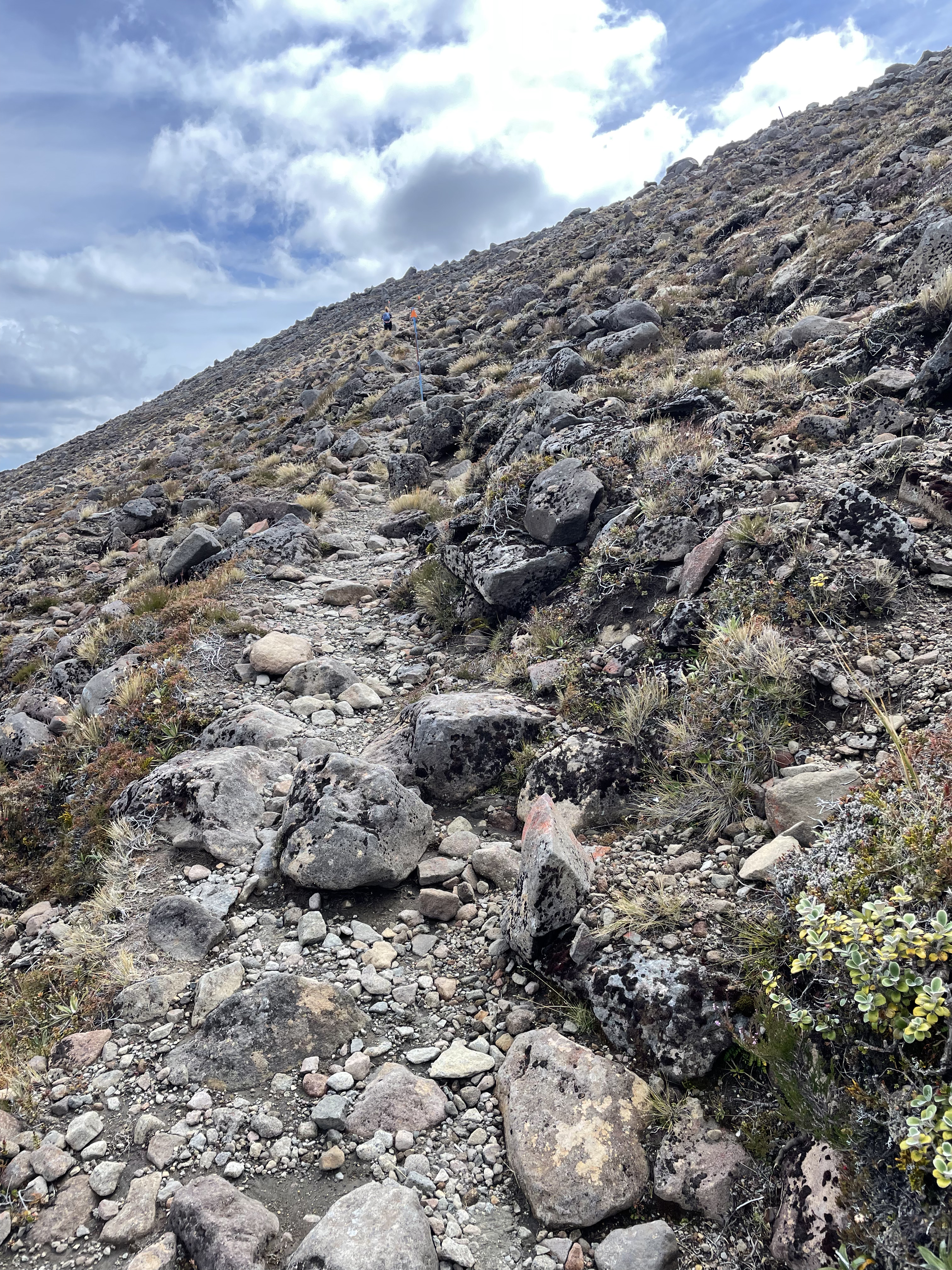 Au bout de la route, la station de ski Whakapapa qui n’est qu’une station de rochers et de cailloux en été. Quelques sentiers se faufilent dans ces dédales minéraux. Nous n’arriverons jamais au « Summit of Dome » pour cause de nuages se profilant à l’horizon et d’heure tardive pour aborder la dernière ascension dans les rochers vers le sommet (si c’était vraiment la dernière ascension car ces montagnes cachent souvent un autre sommet après chaque sommet !) mais vues à couper le souffle tout de même, avec toujours le volcan Tongariro en point de mire.