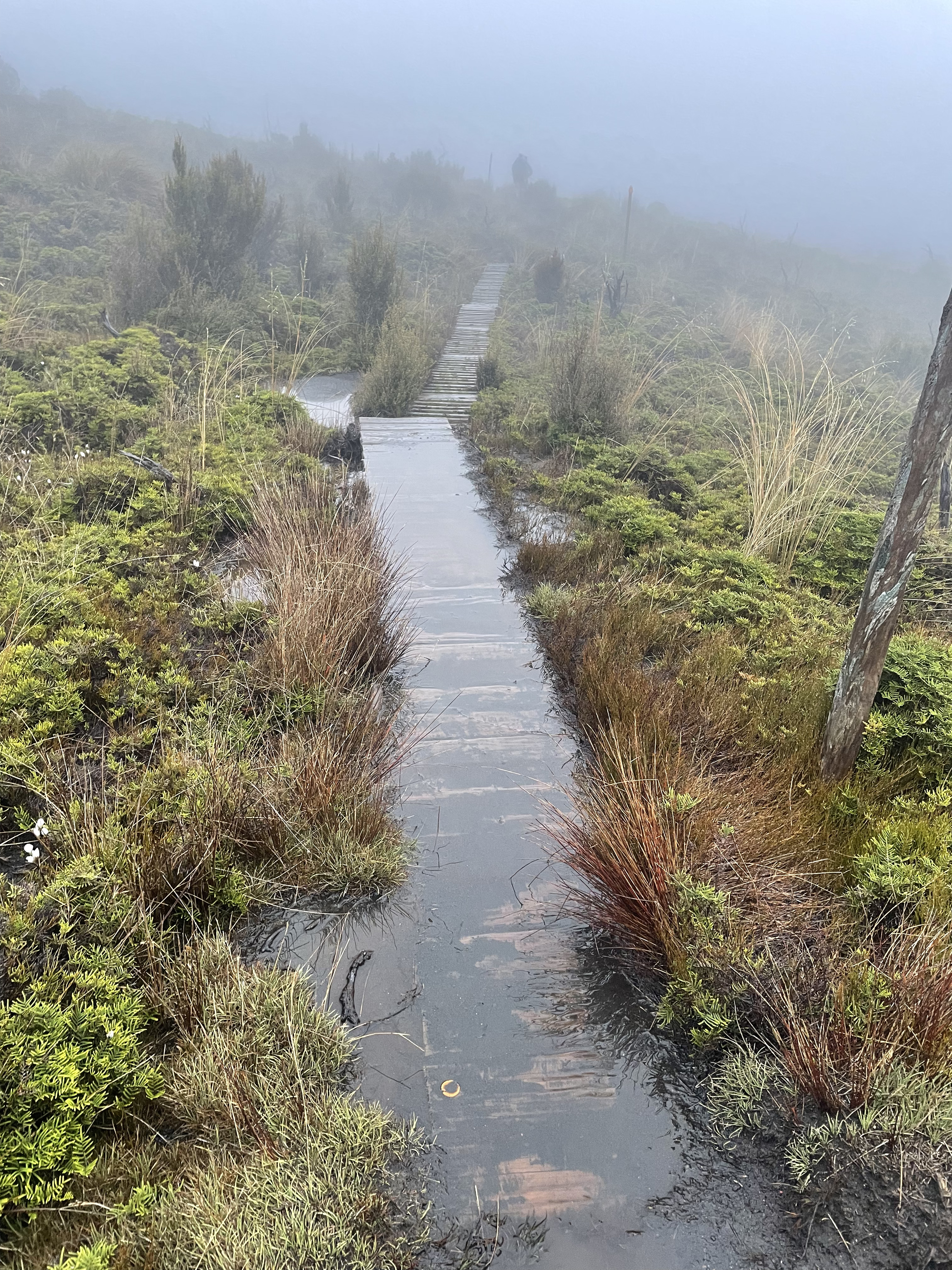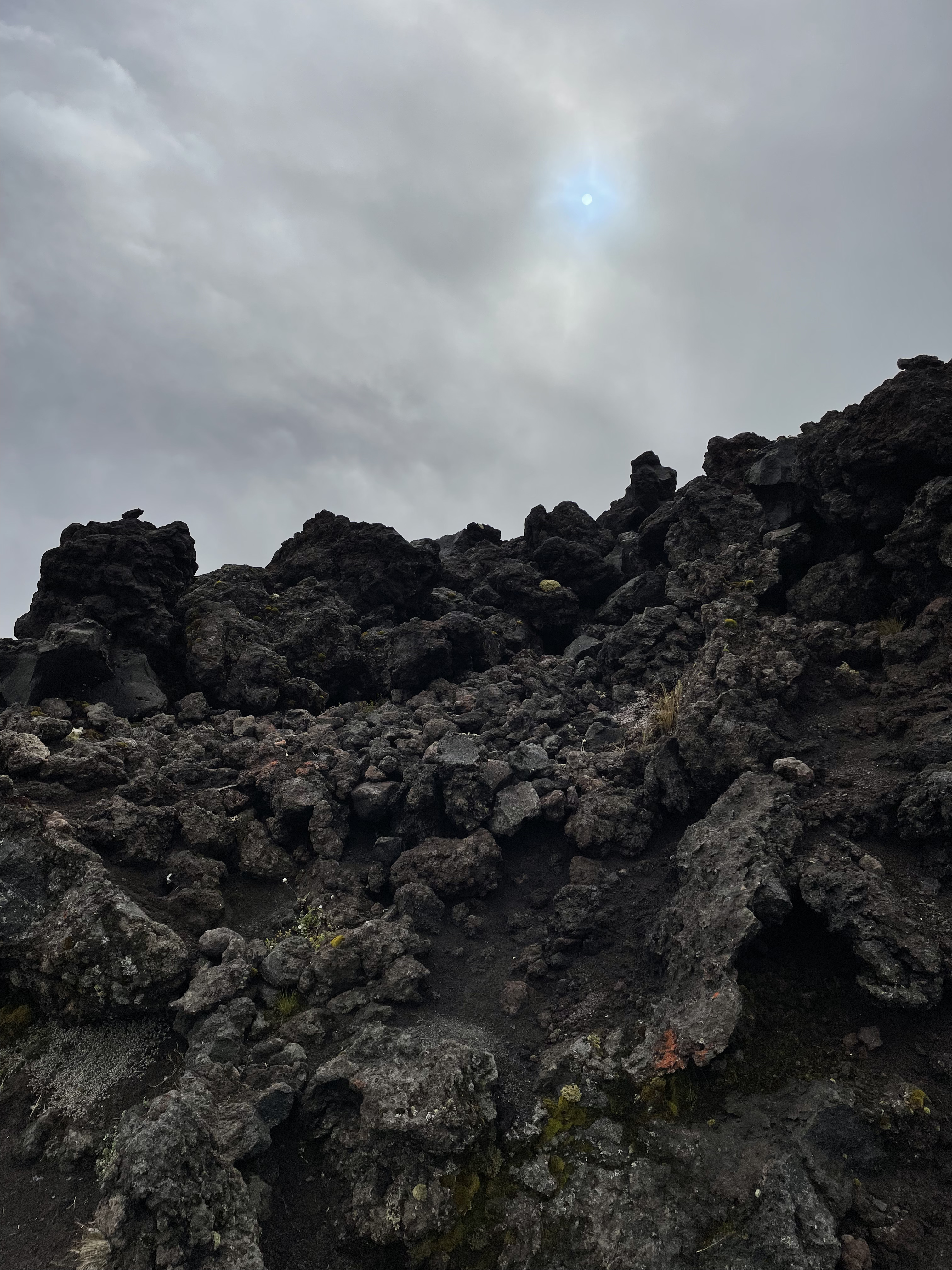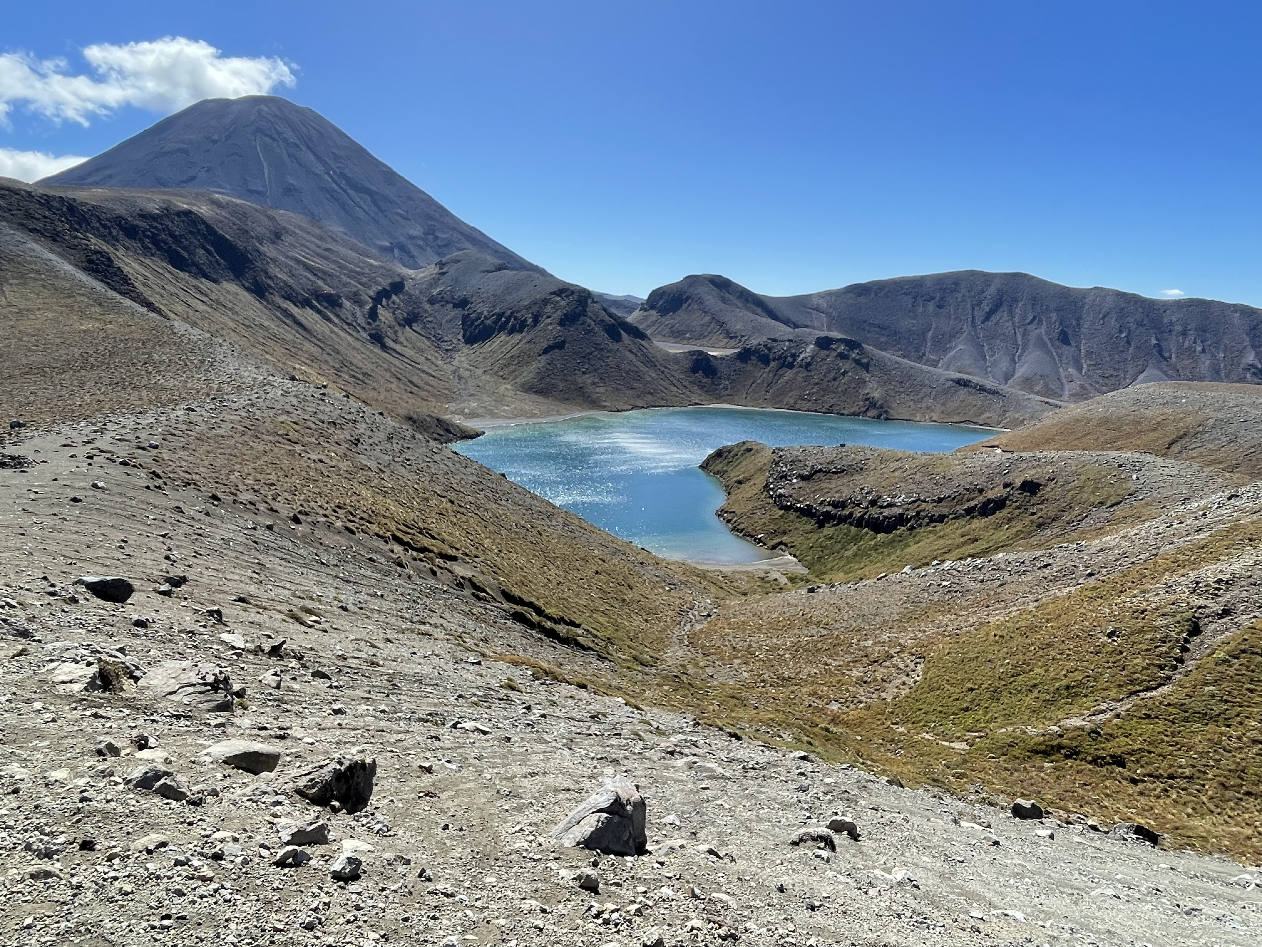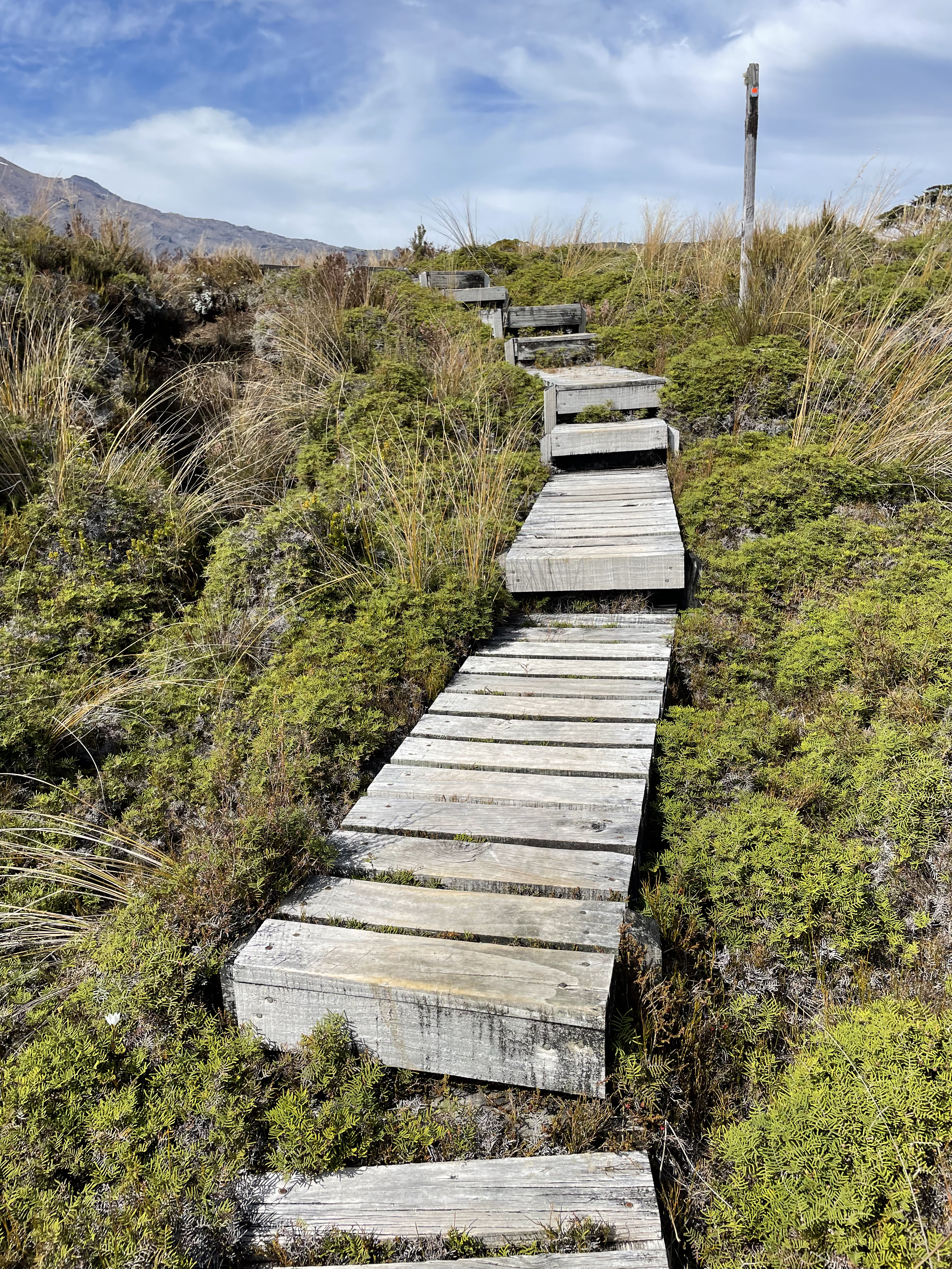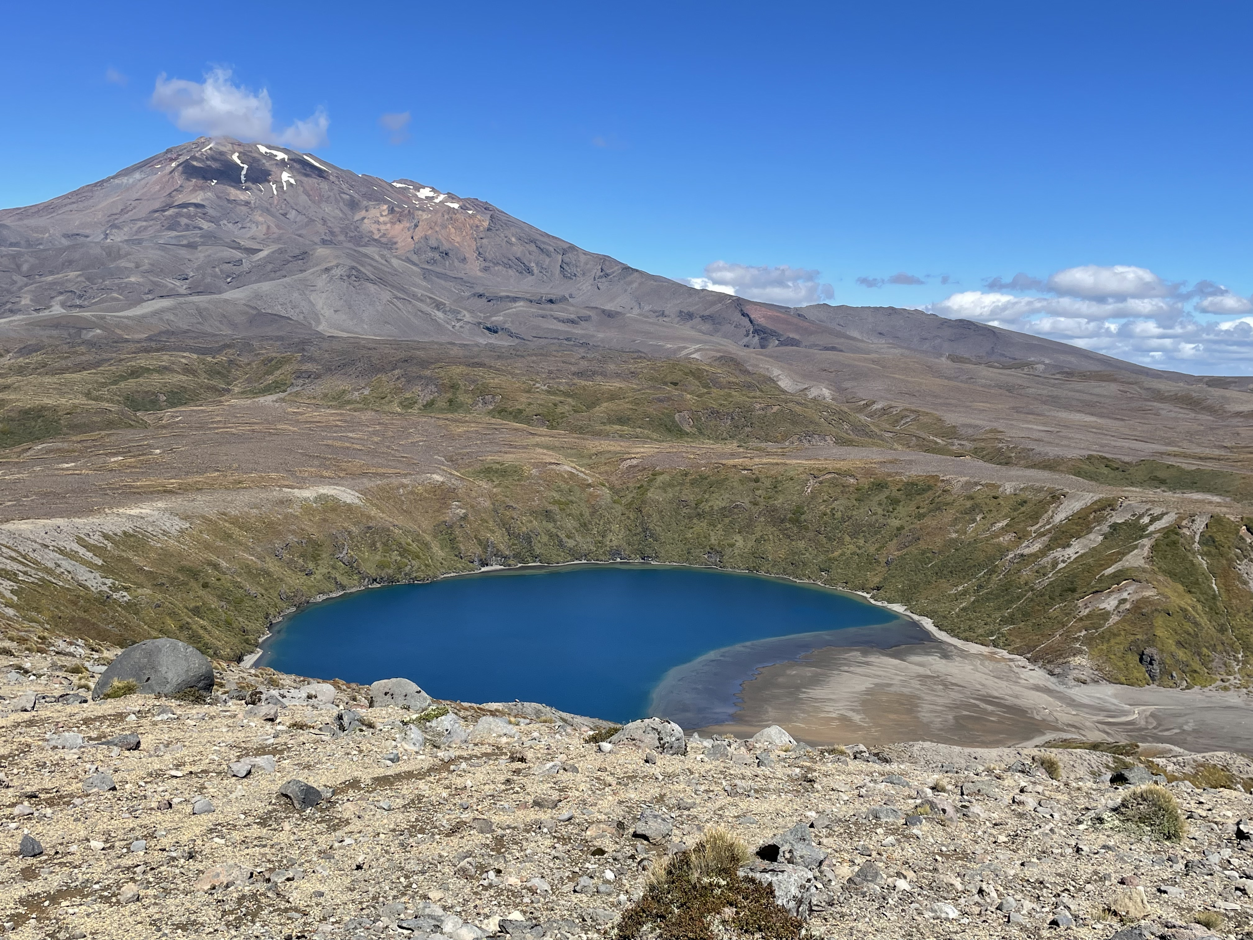 Au bout de la route, la station de ski Whakapapa qui n’est qu’une station de rochers et de cailloux en été. Quelques sentiers se faufilent dans ces dédales minéraux. Nous n’arriverons jamais au « Summit of Dome » pour cause de nuages se profilant à l’horizon et d’heure tardive pour aborder la dernière ascension dans les rochers vers le sommet (si c’était vraiment la dernière ascension car ces montagnes cachent souvent un autre sommet après chaque sommet !) mais vues à couper le souffle tout de même, avec toujours le volcan Tongariro en point de mire.
